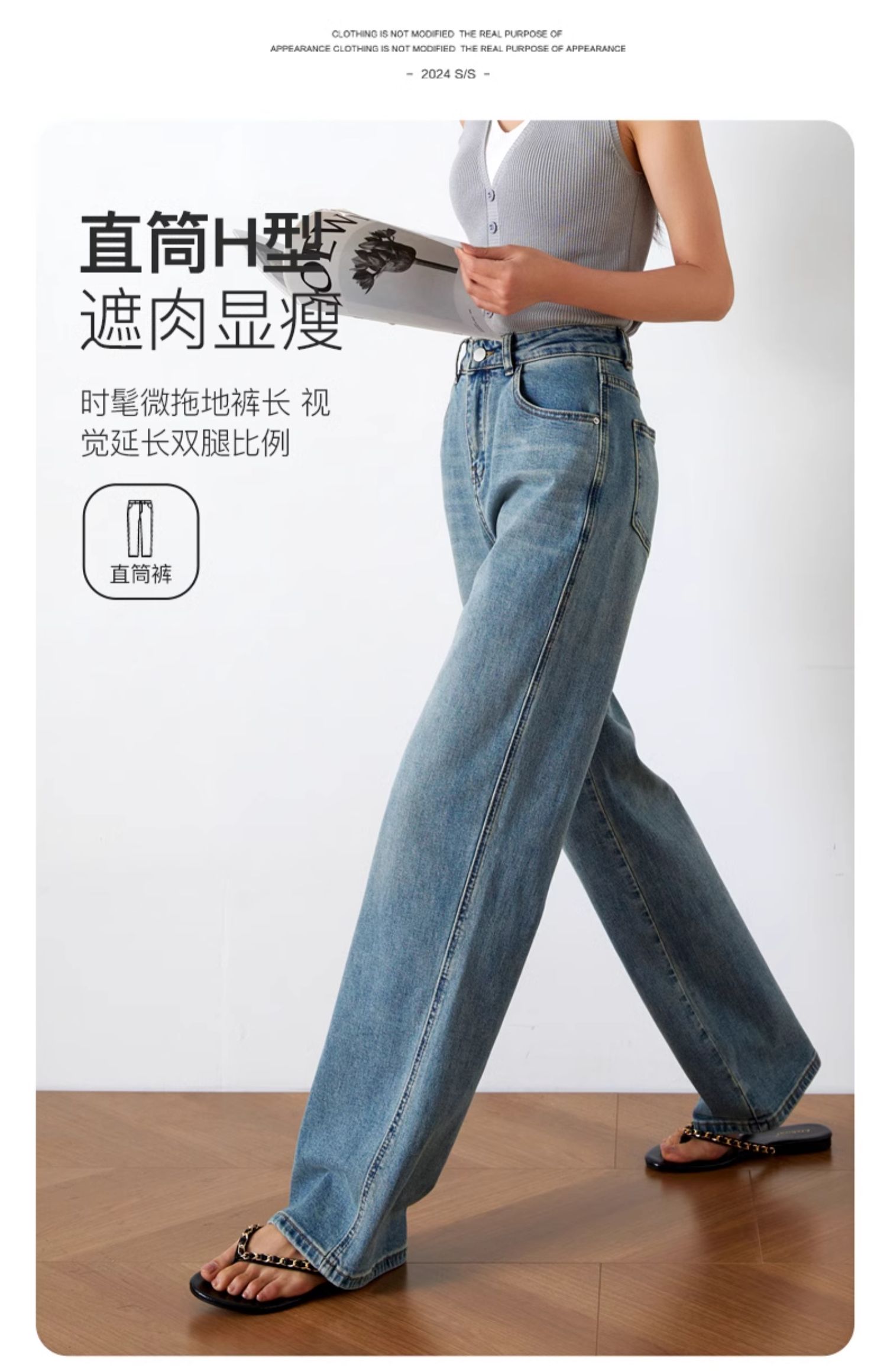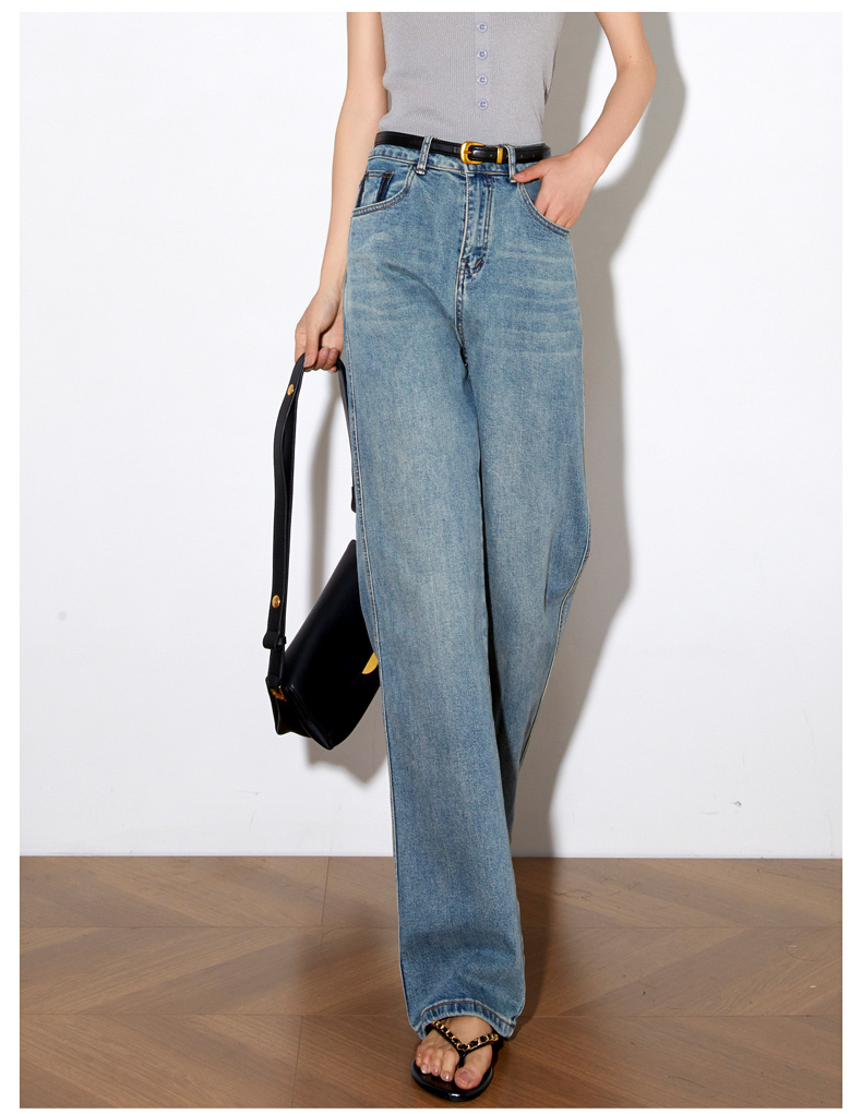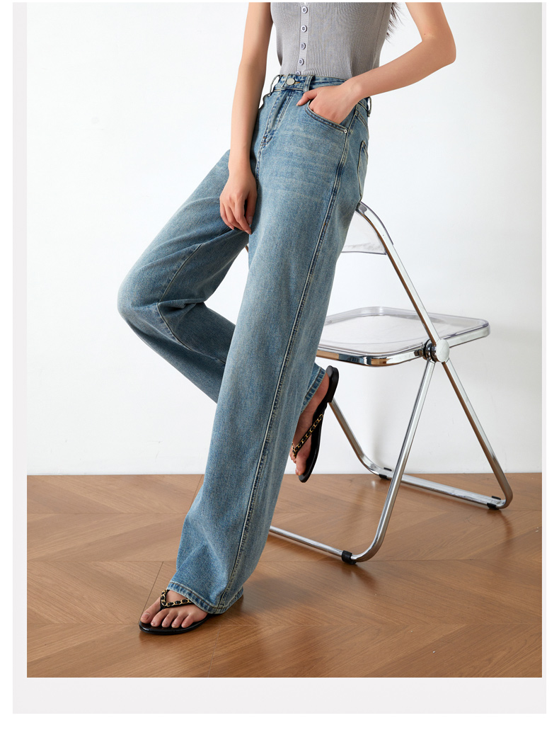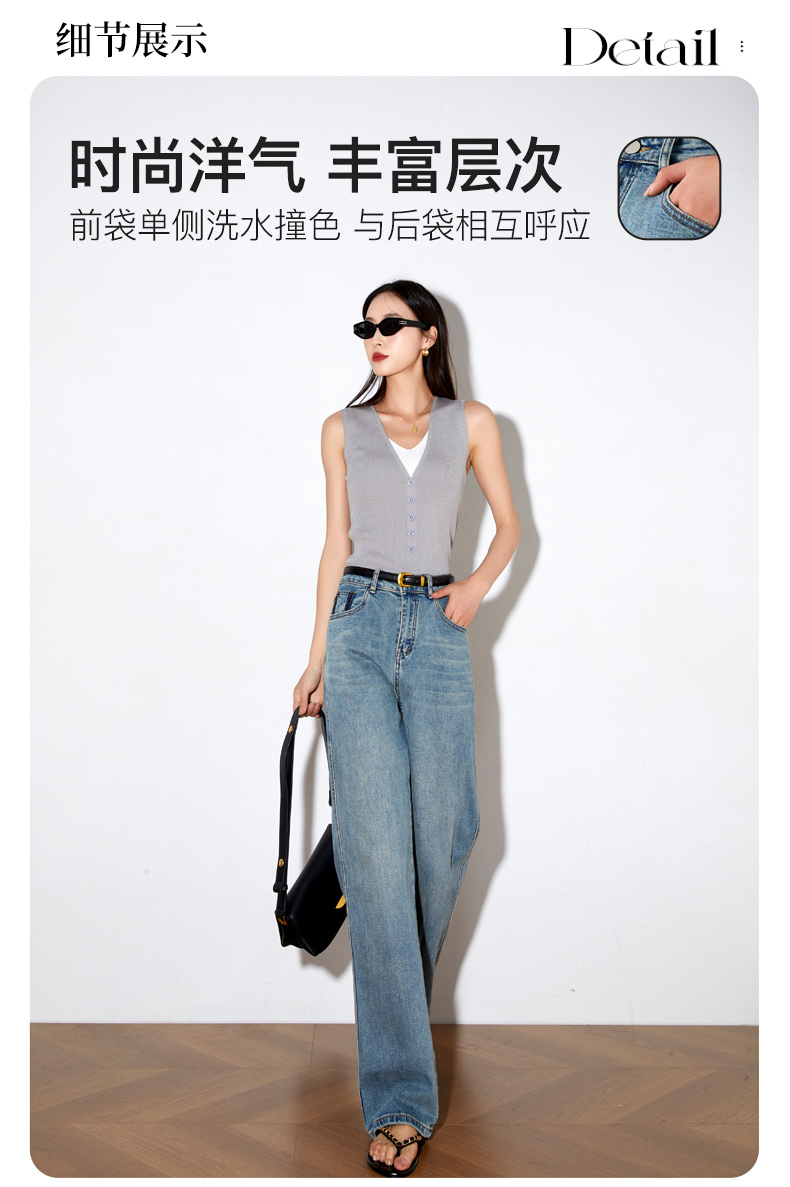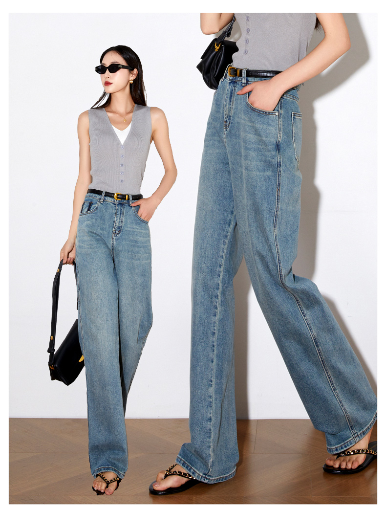 OLrain欧芮儿高腰牛仔裤女夏季2024年新款时尚直筒阔腿拖地裤