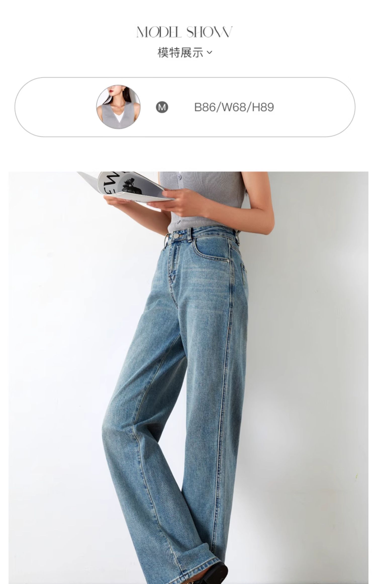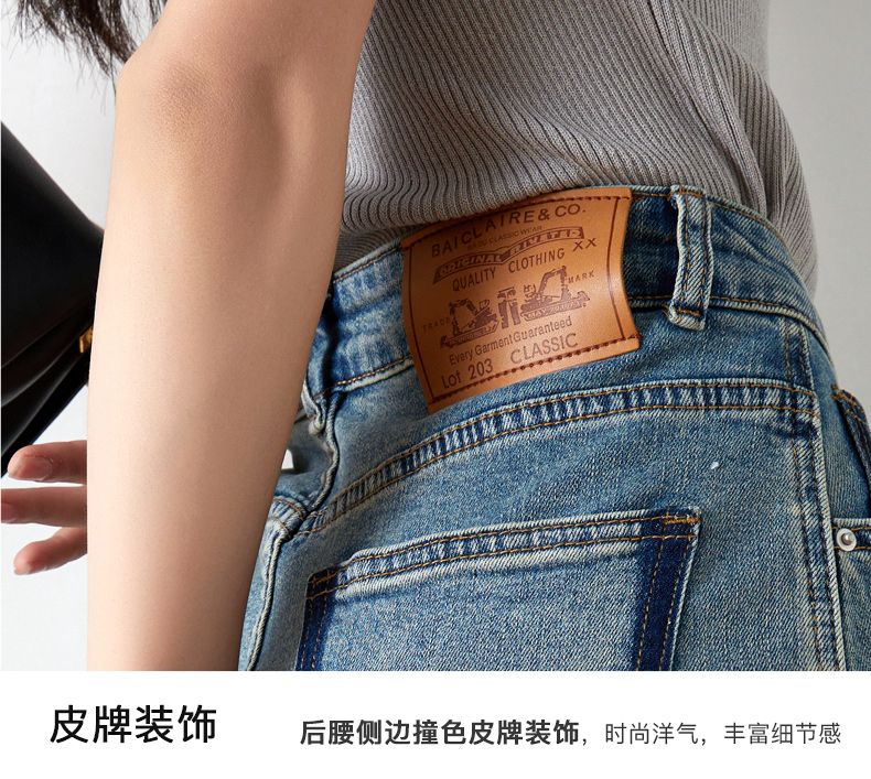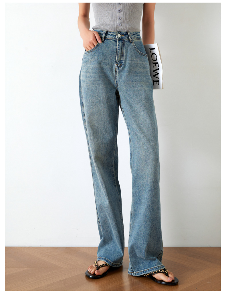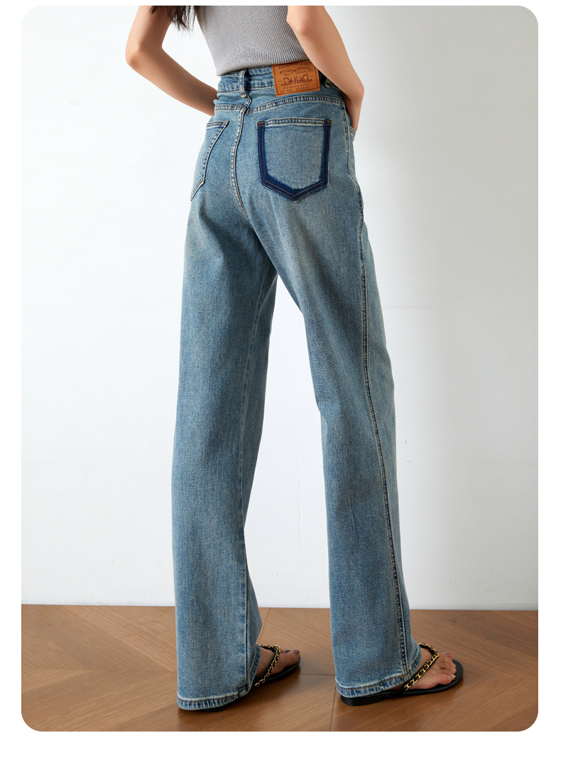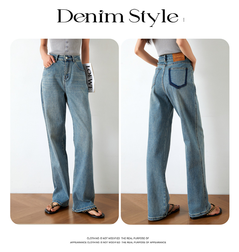 OLrain欧芮儿高腰牛仔裤女夏季2024年新款时尚直筒阔腿拖地裤