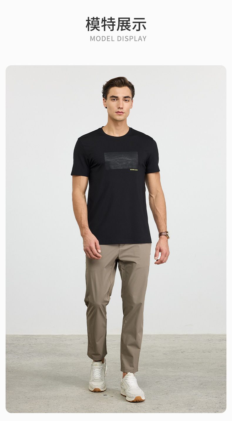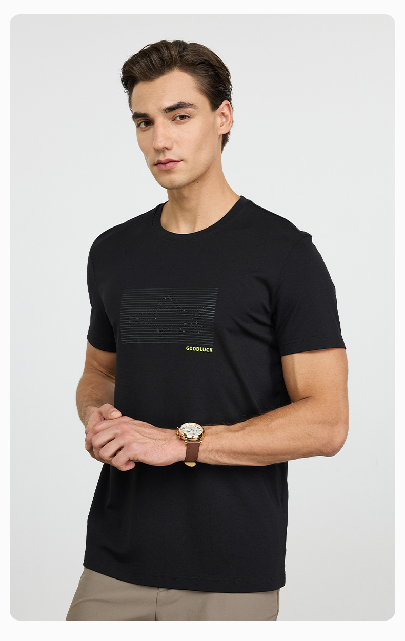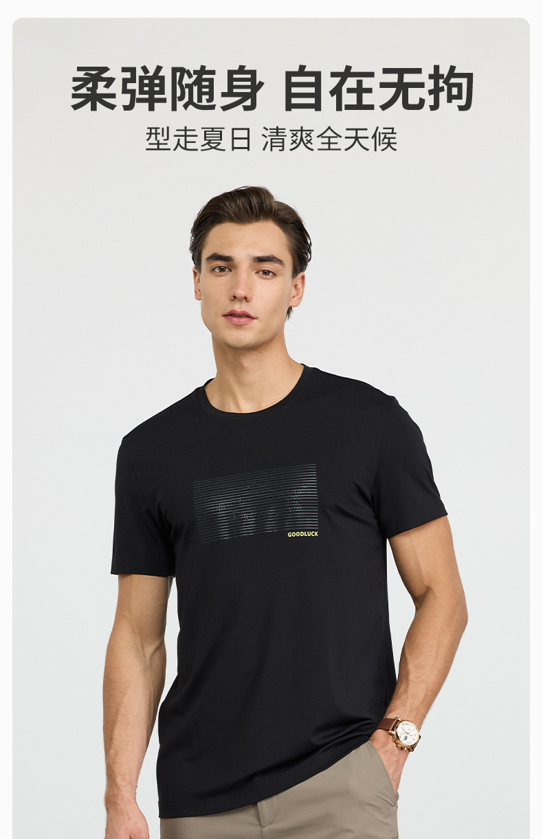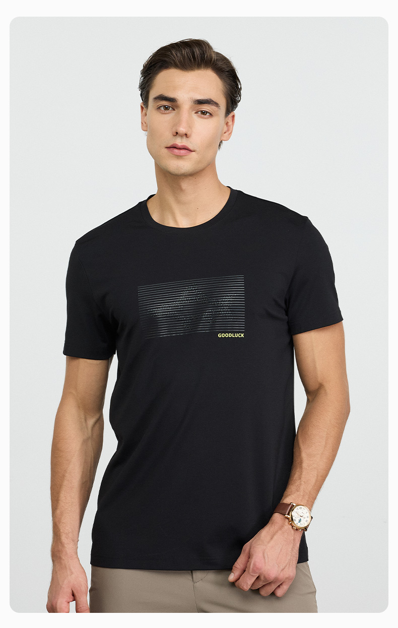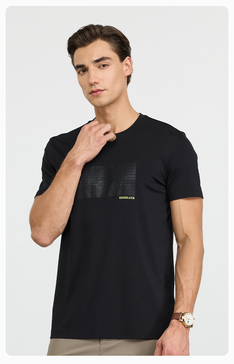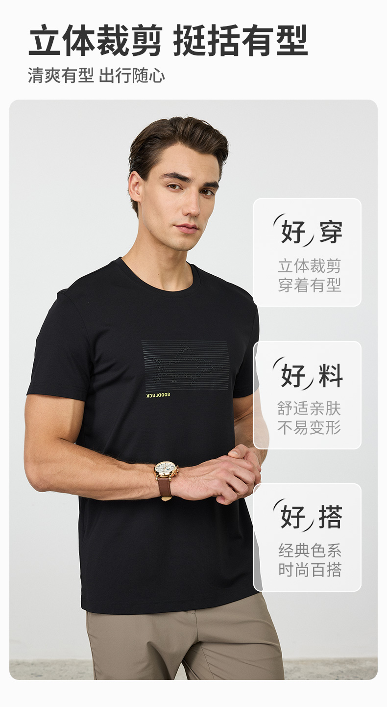 德鲨黑色印花短袖圆领T恤男青年2026夏季新款百搭舒适上衣打底衫
