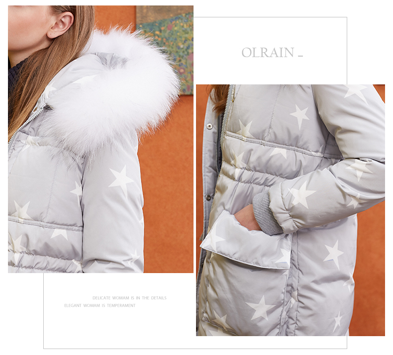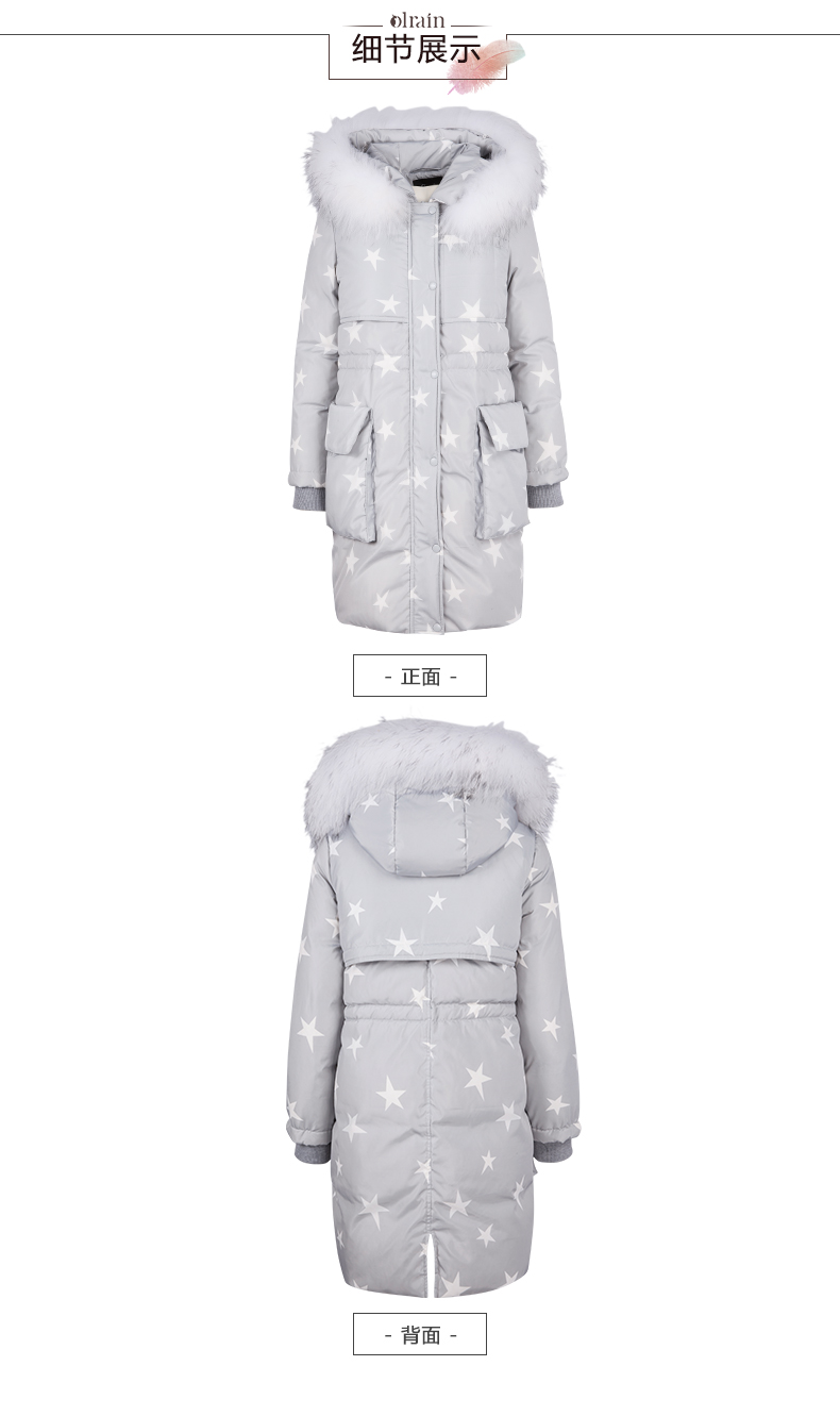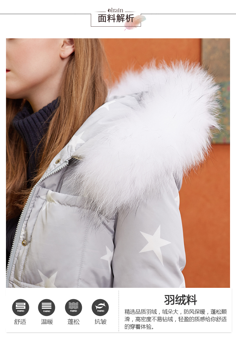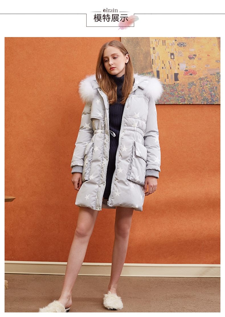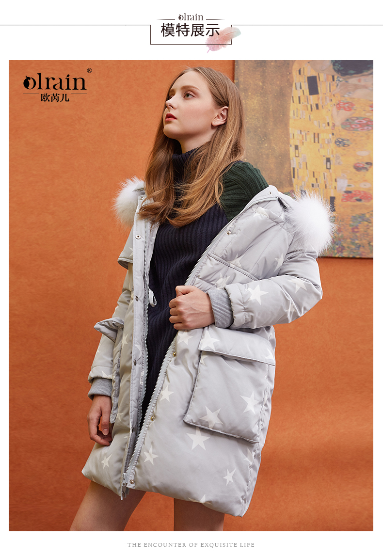 欧芮儿2019秋冬 羽绒服女中长款真毛领90绒直筒加厚外套
