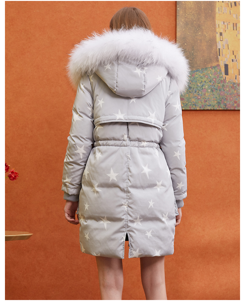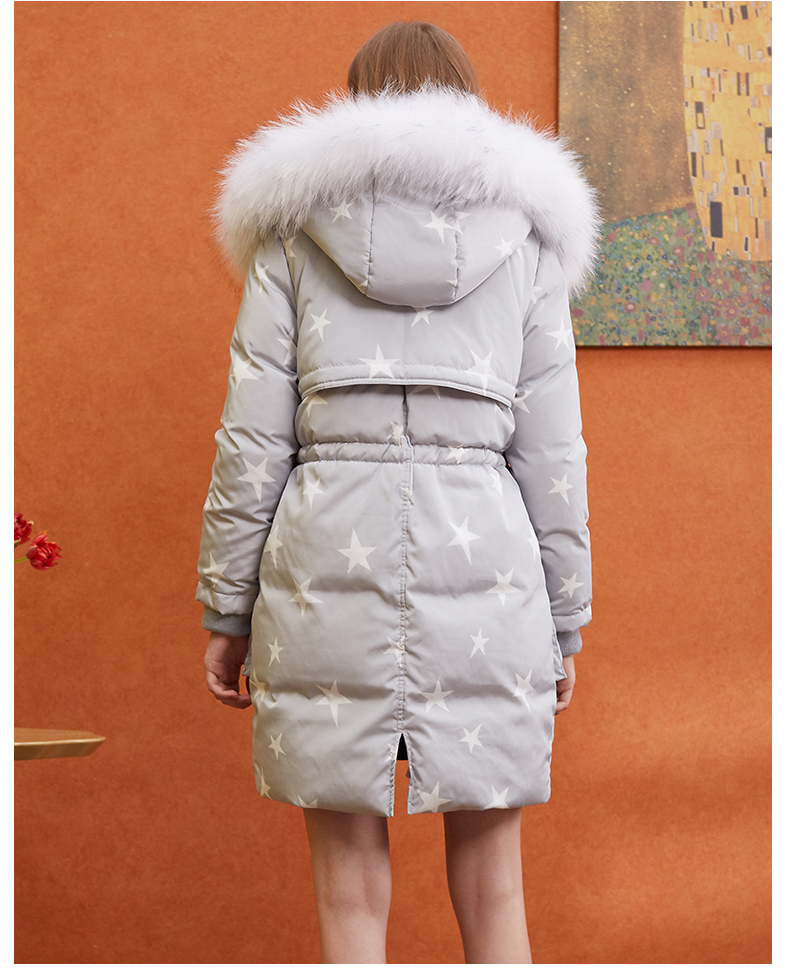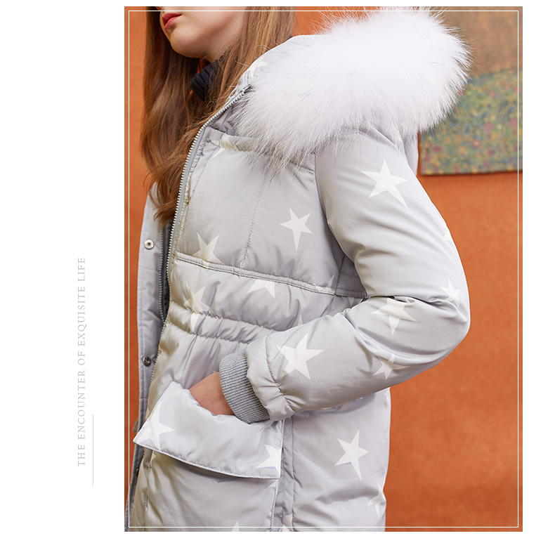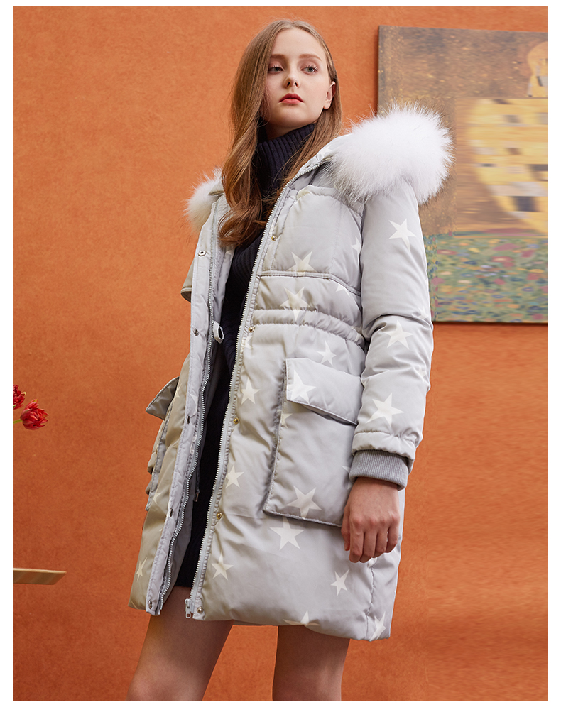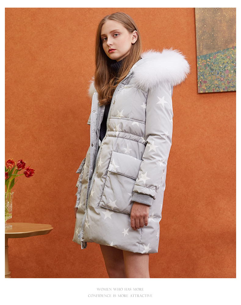欧芮儿2019秋冬 羽绒服女中长款真毛领90绒直筒加厚外套