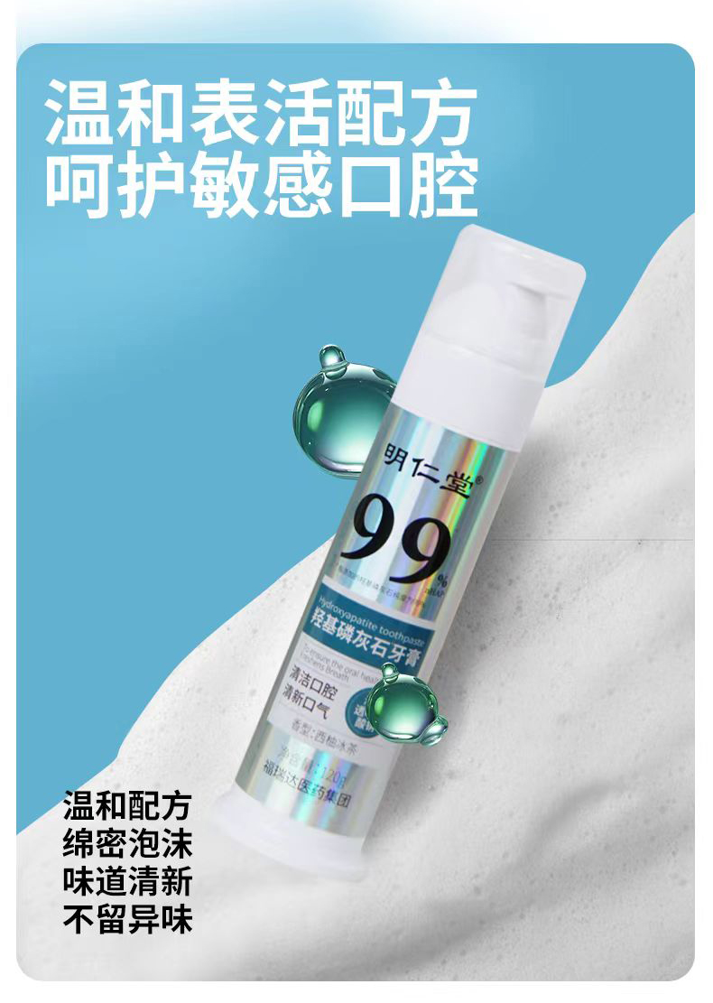 【拍一发二】福瑞达明仁堂羟基磷灰石牙膏120g超大支真空包装