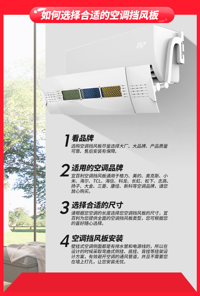 宜百利 中央空调挡风板 吸顶机天花机防直吹空调挡板 出风口导风遮风罩冷气出风口挡板 一体式60cm精致款5502