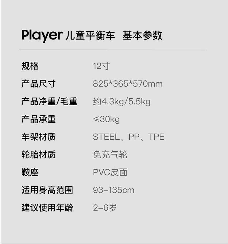 【Qplay】player儿童12寸平衡车(2-5岁)