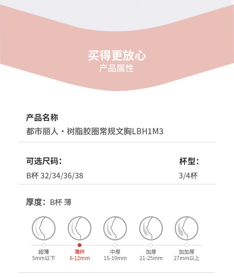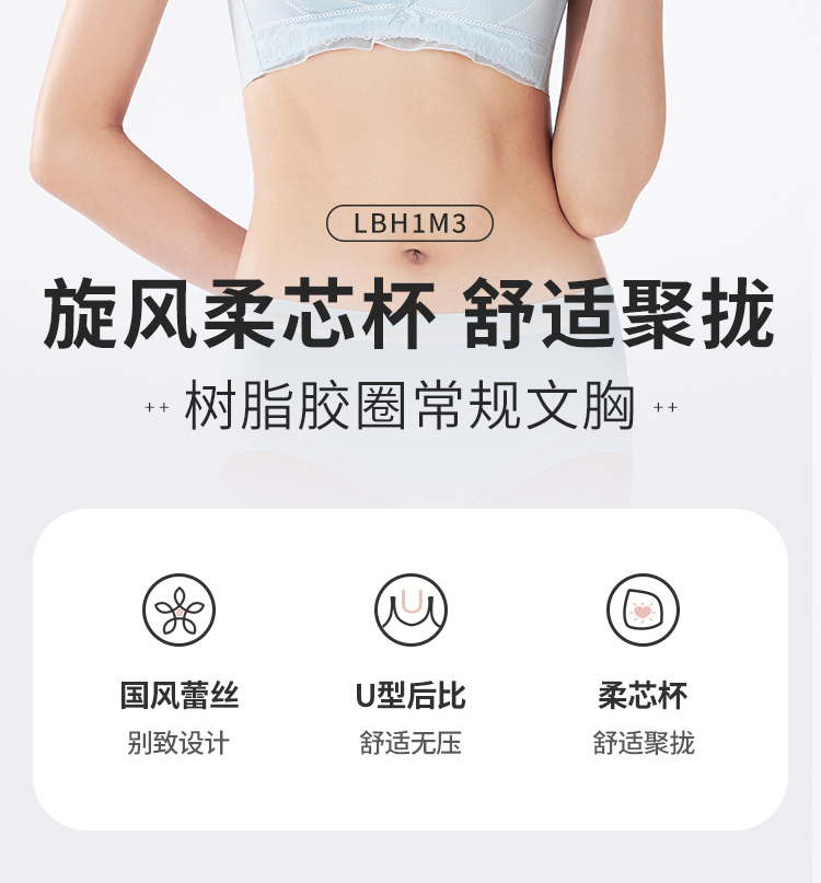 都市丽人自然舒适B杯常规内衣薄蕾丝树脂胶圈常规文胸LBH1M3