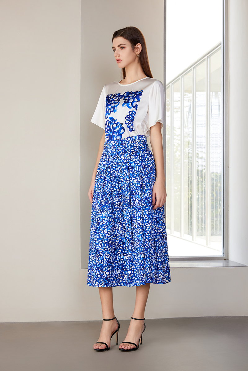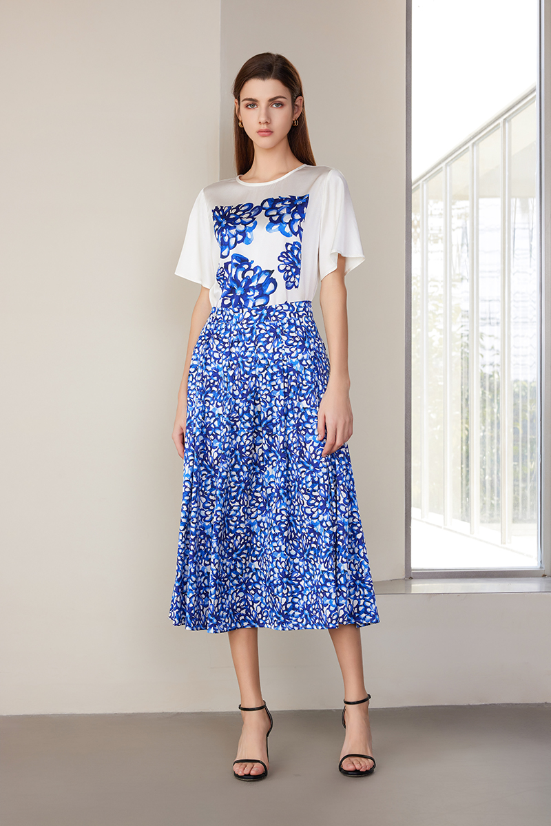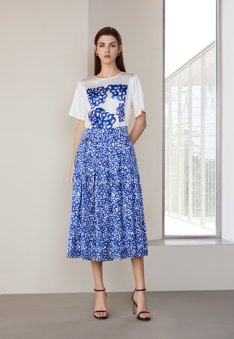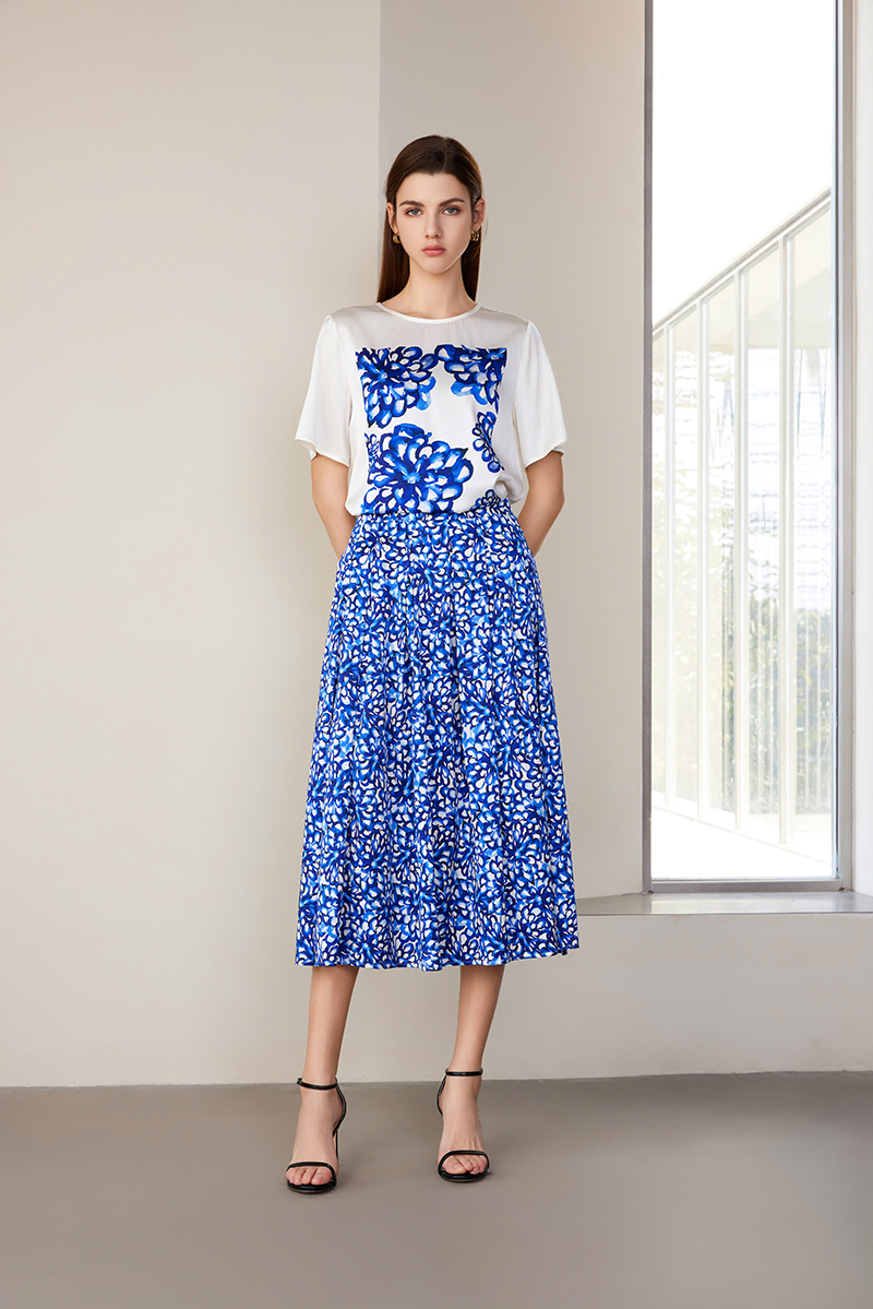 【桑蚕丝印花T恤】24年春夏新品女士真丝圆领短袖薄款上衣