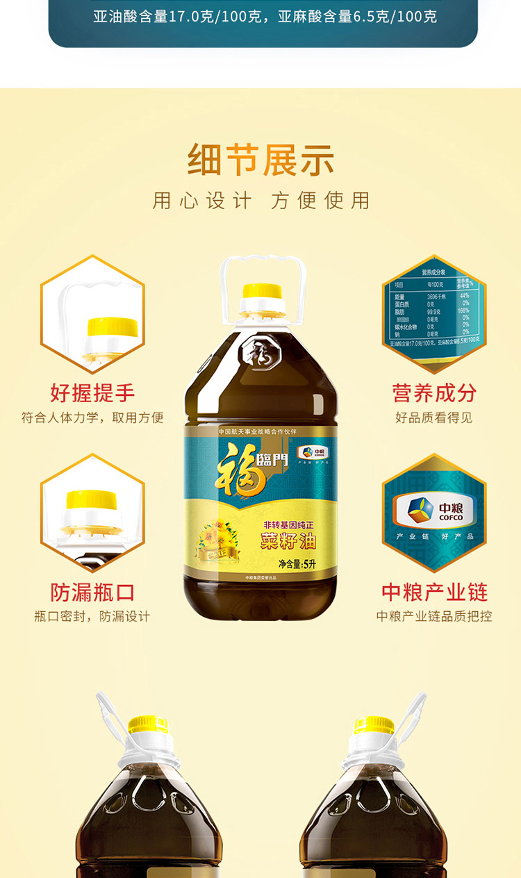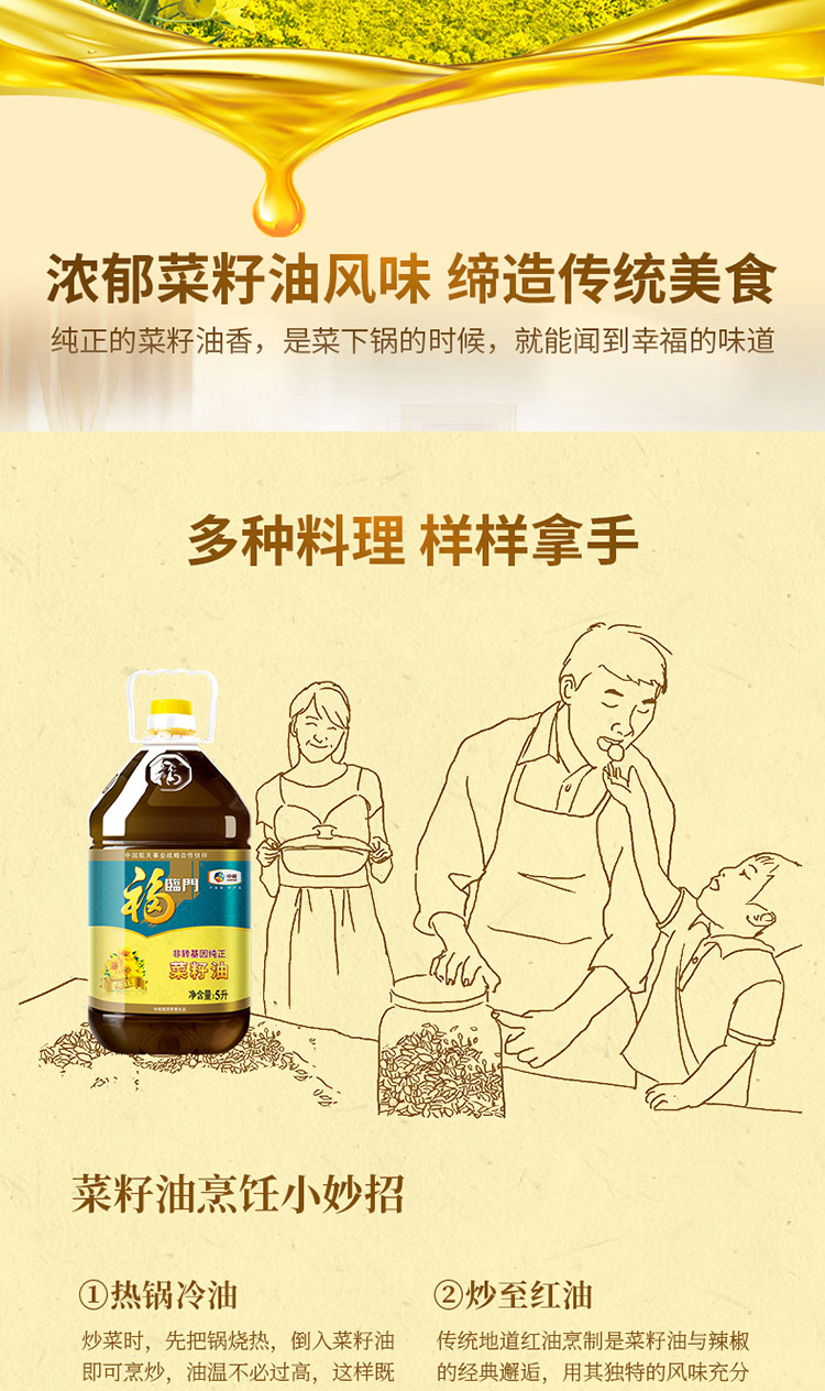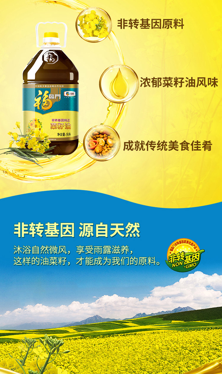 福临门非转基因纯正菜籽油 5L