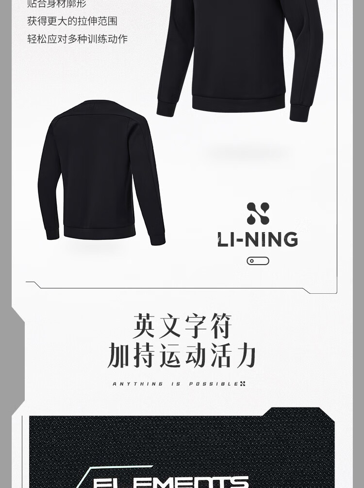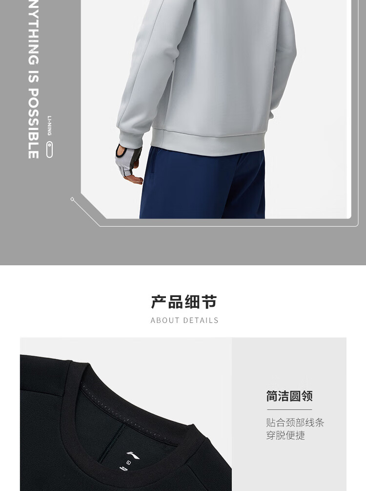 李宁机能全天候系列丨卫衣男套头圆领健身系列2024春外套AWDU057