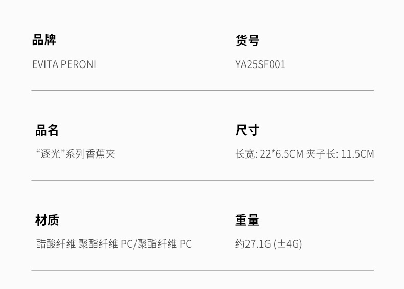 品牌直发 Evita “逐光”系列香蕉夹 藏青蓝/ 优雅黑/ 云柔杏/ 鎏银墨蓝/ 藏椰壳棕