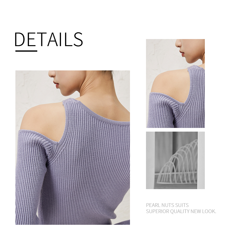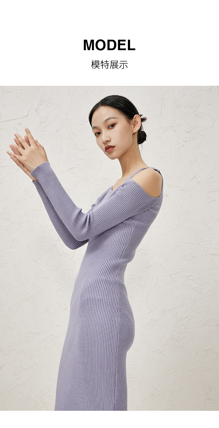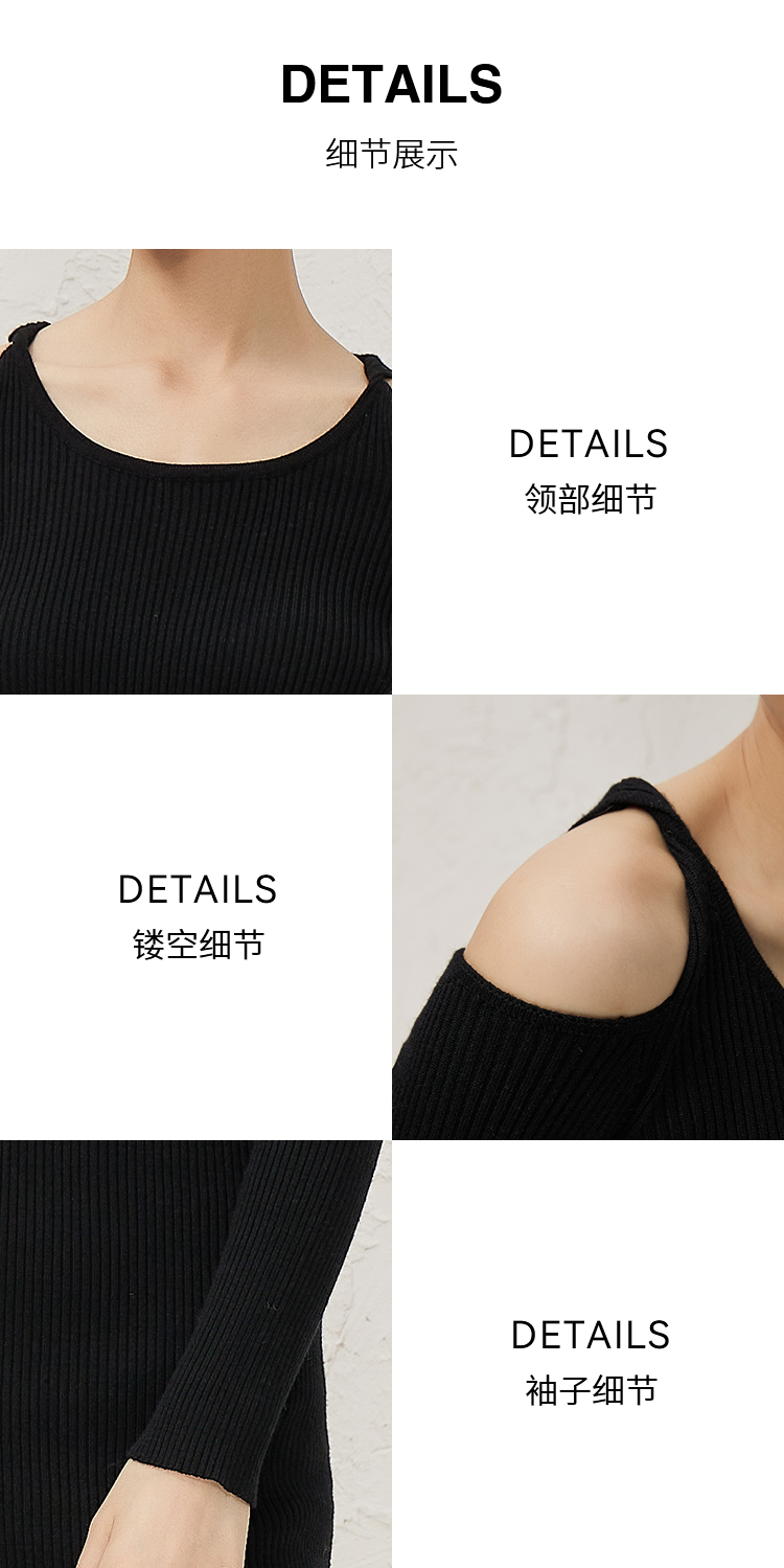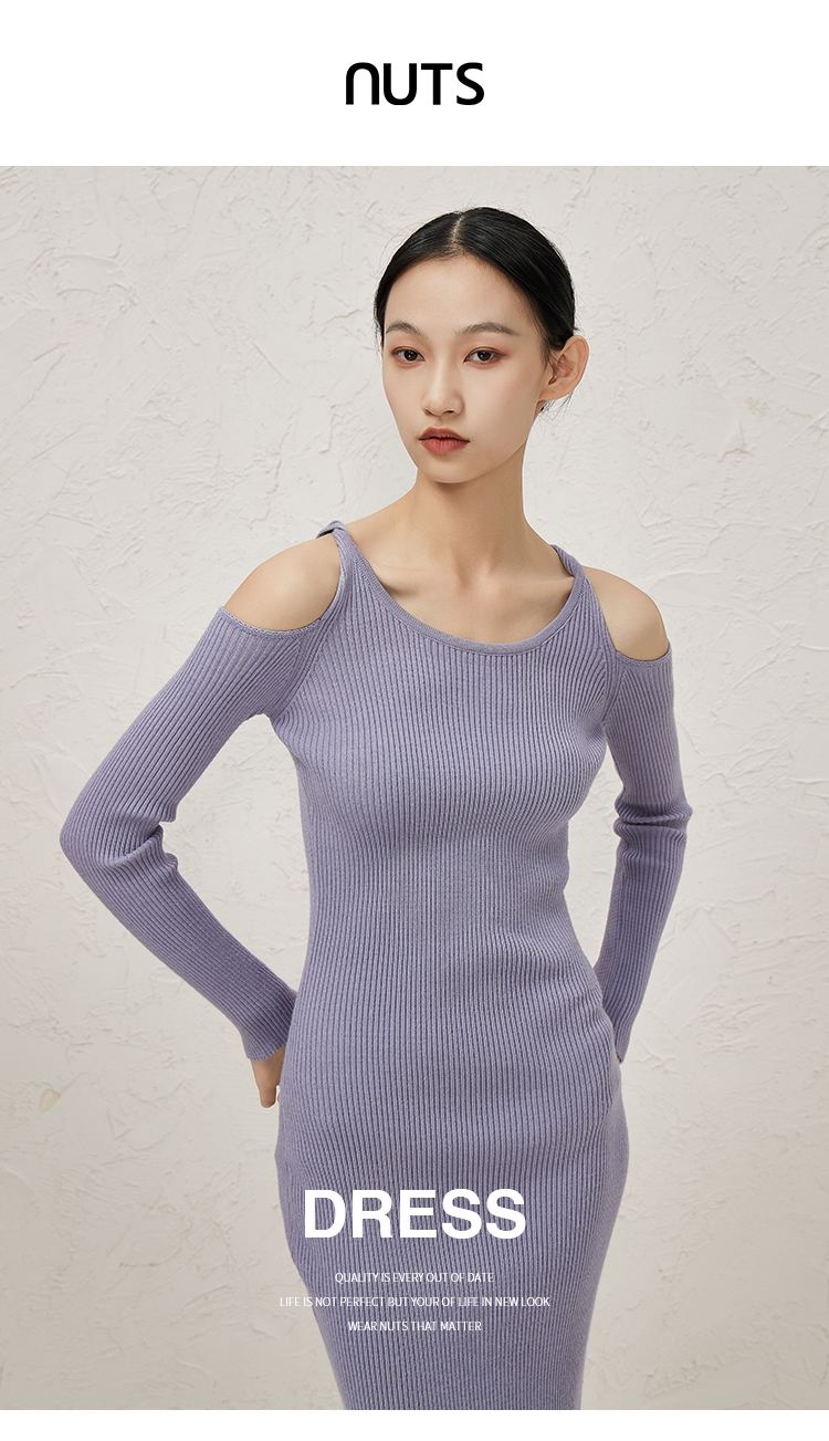 NUTS秋冬款纯色设计感小众镂空简约圆领修身针织连衣裙343103198