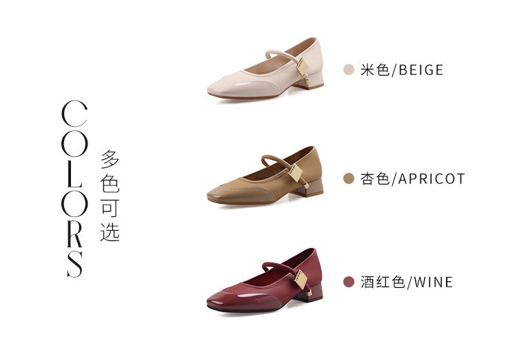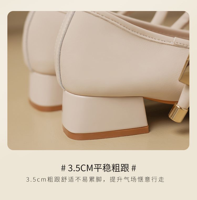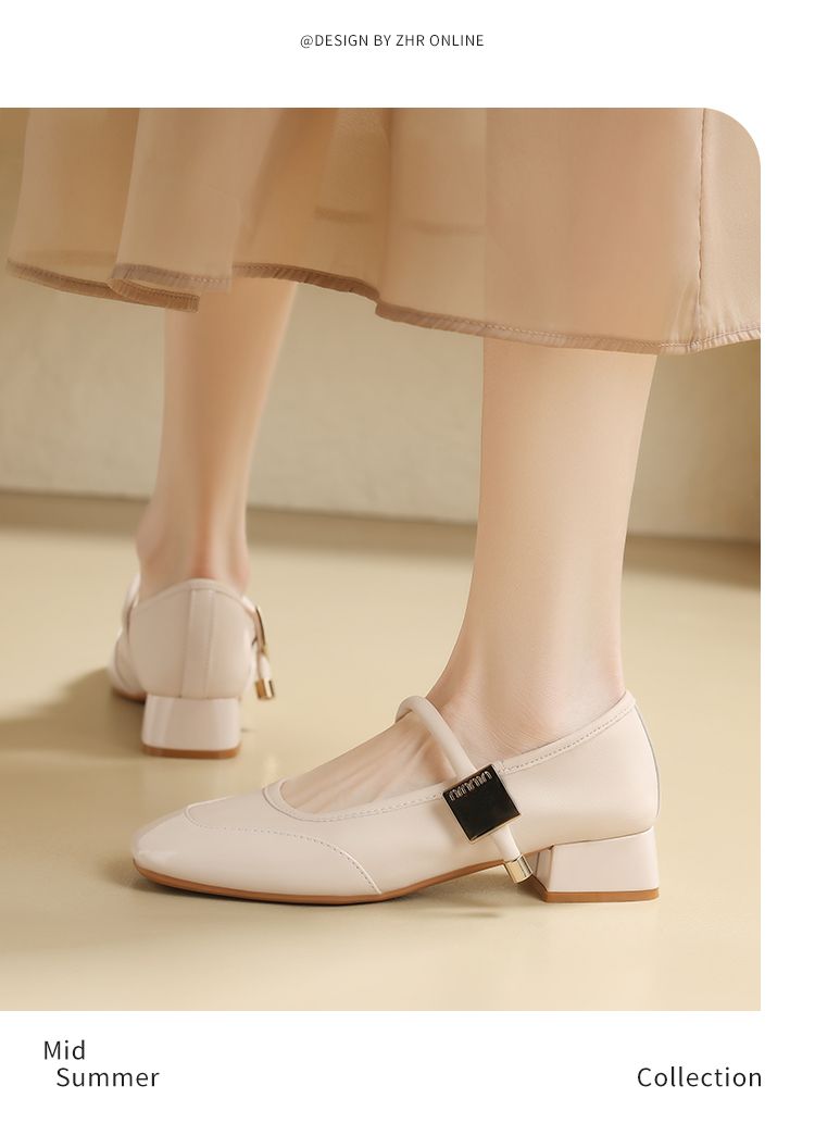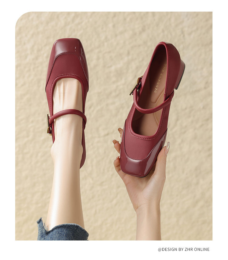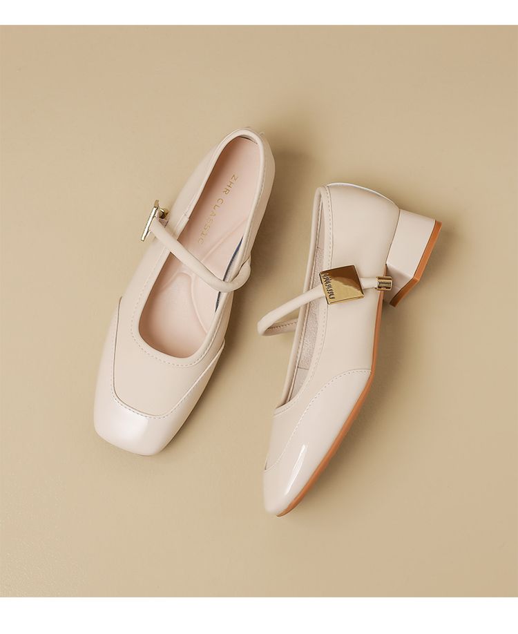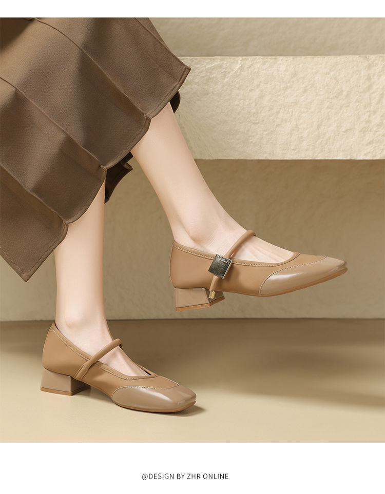 ZHR则则法式复古方头单鞋女鞋2024春季新款优雅舒适粗跟玛丽珍鞋