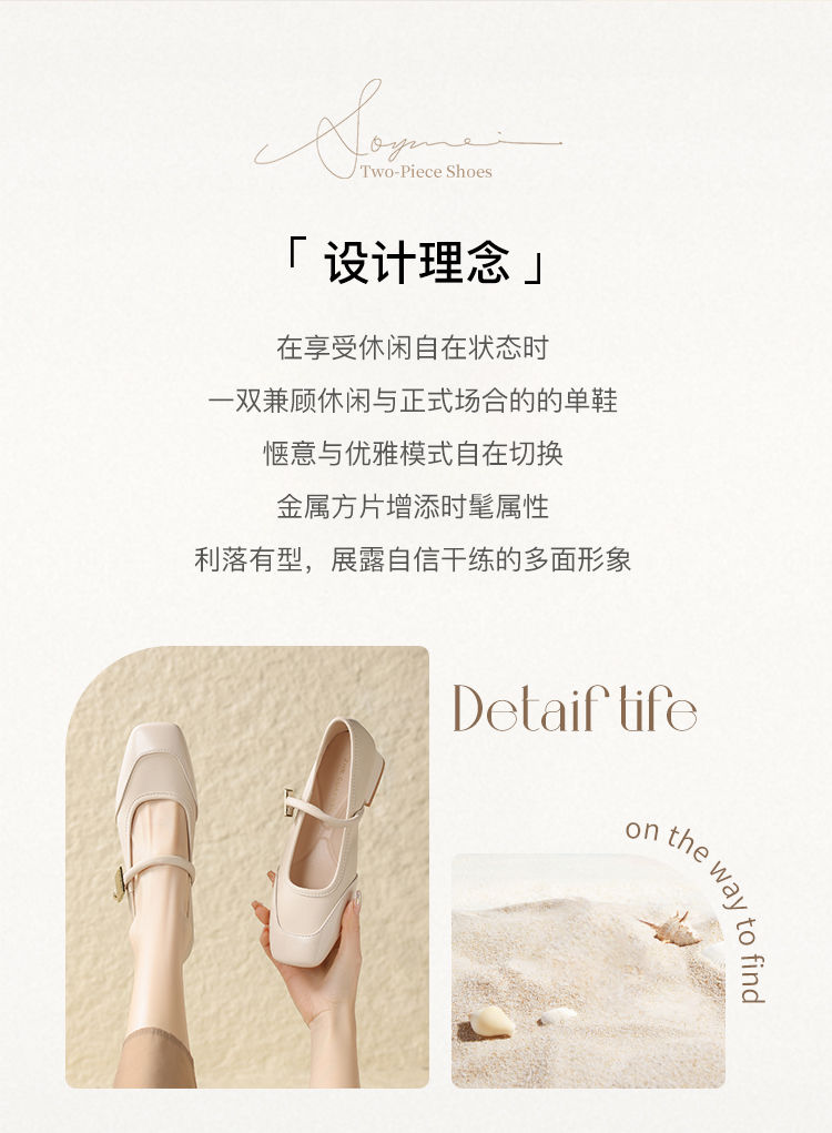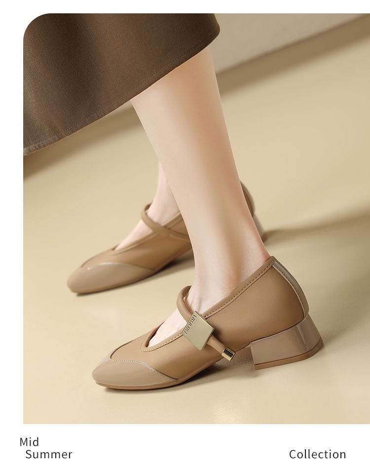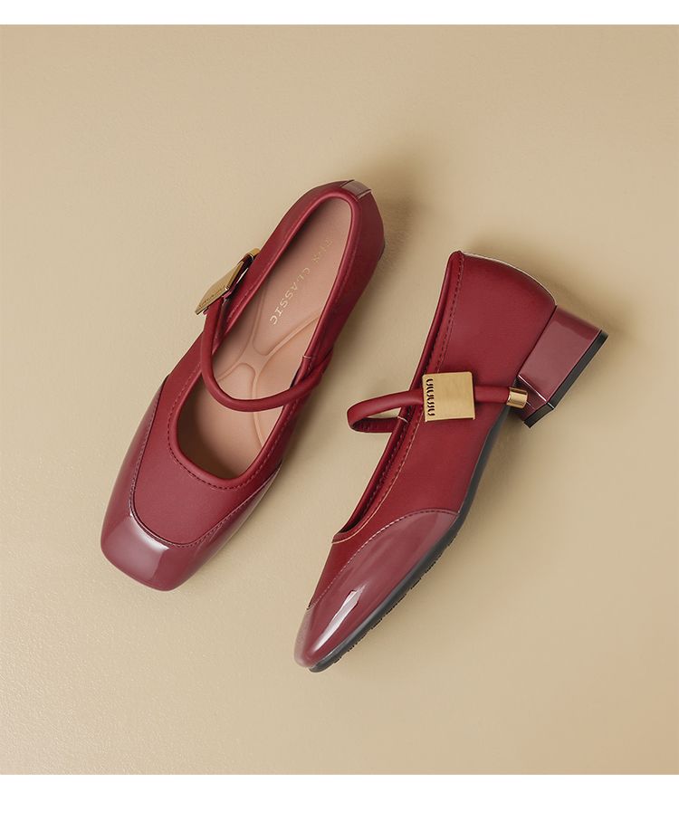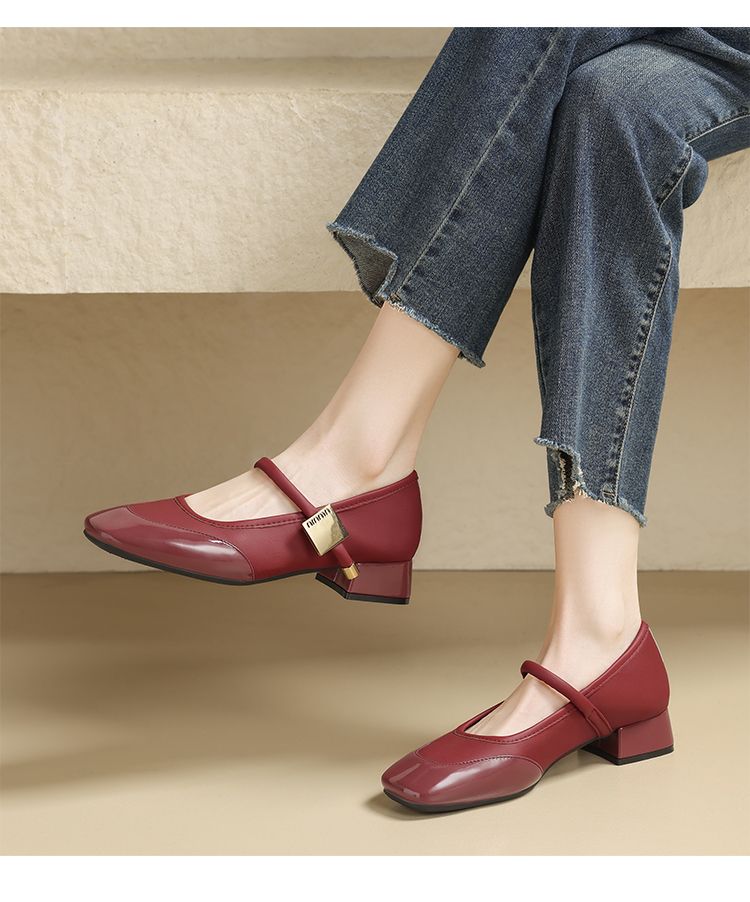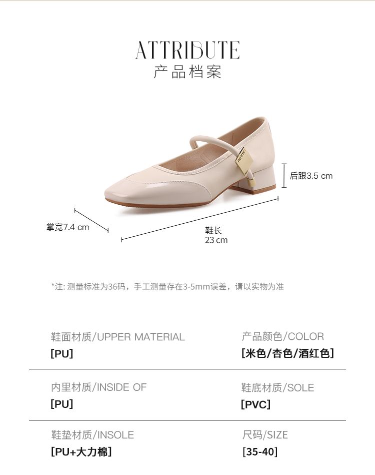 ZHR则则法式复古方头单鞋女鞋2024春季新款优雅舒适粗跟玛丽珍鞋