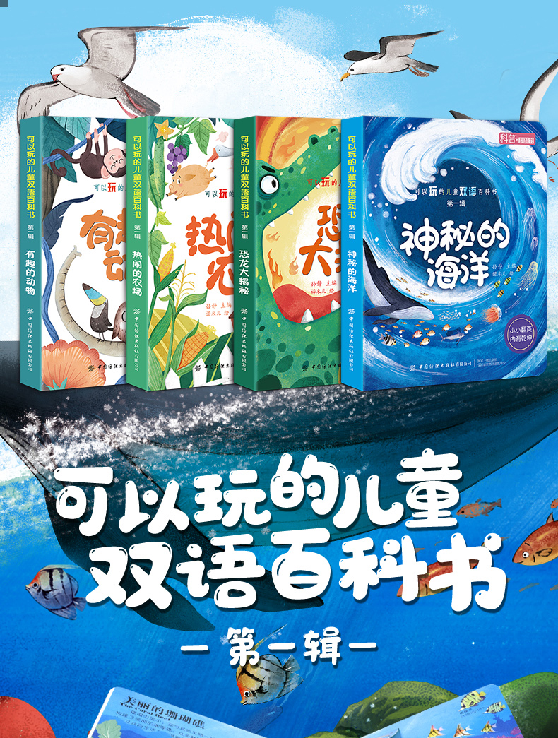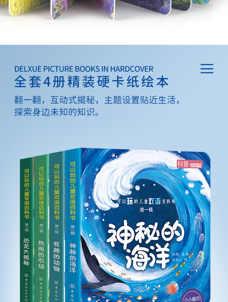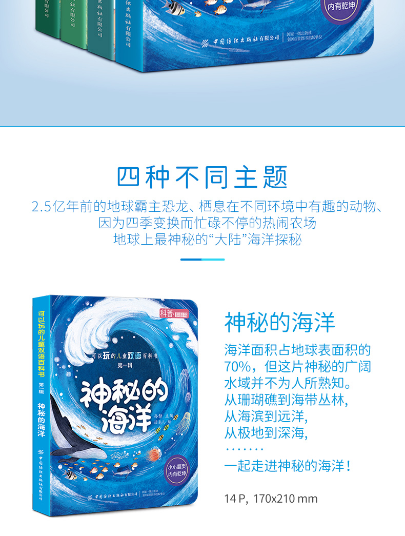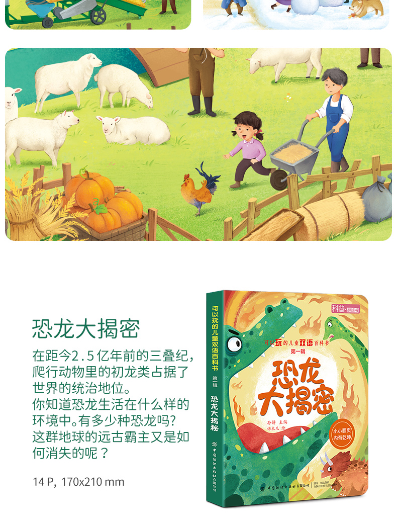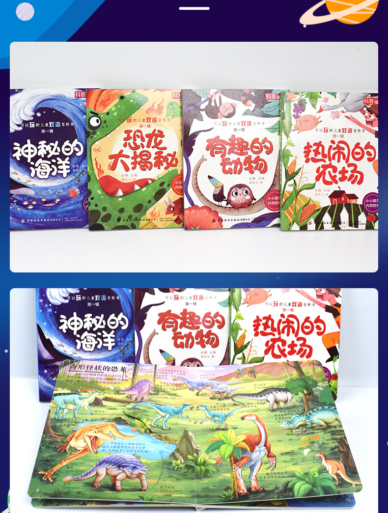 可以玩儿的儿童双语百科书 第一辑4册 神秘的海洋/有趣的动物/热闹的农场/恐龙大揭秘 儿童科普百科书趣味认知儿童3d立体书翻翻书