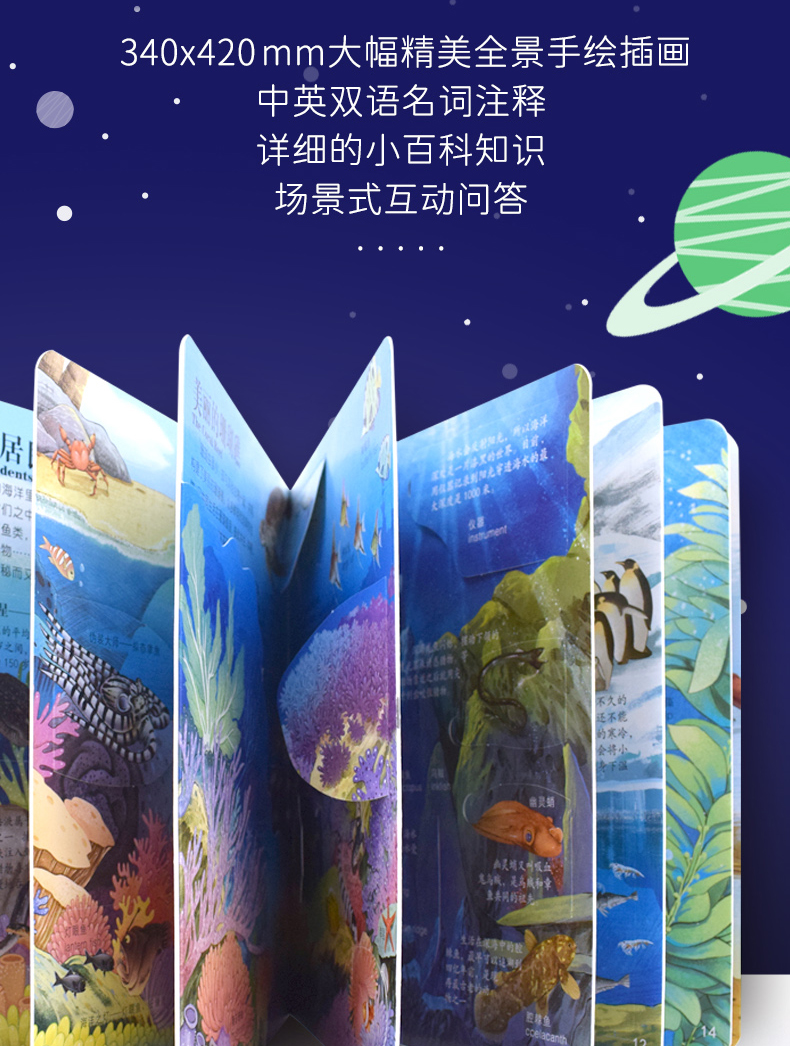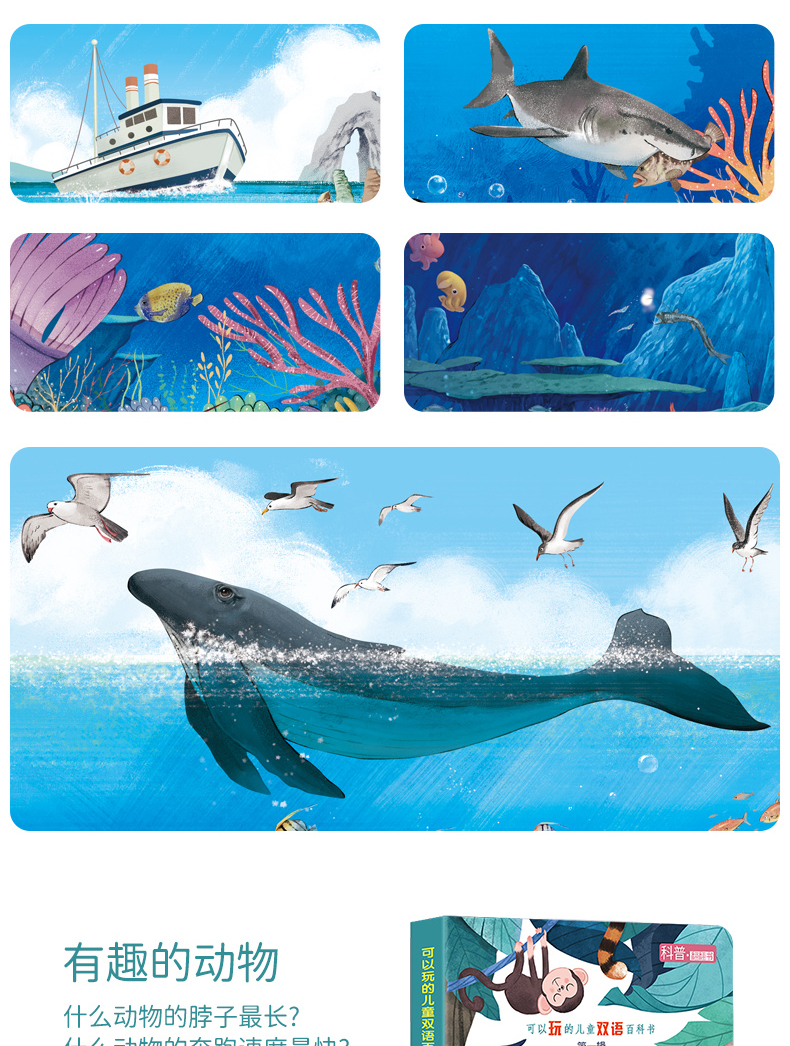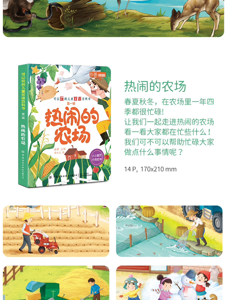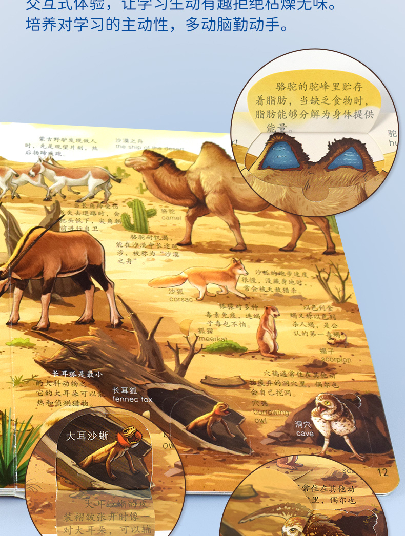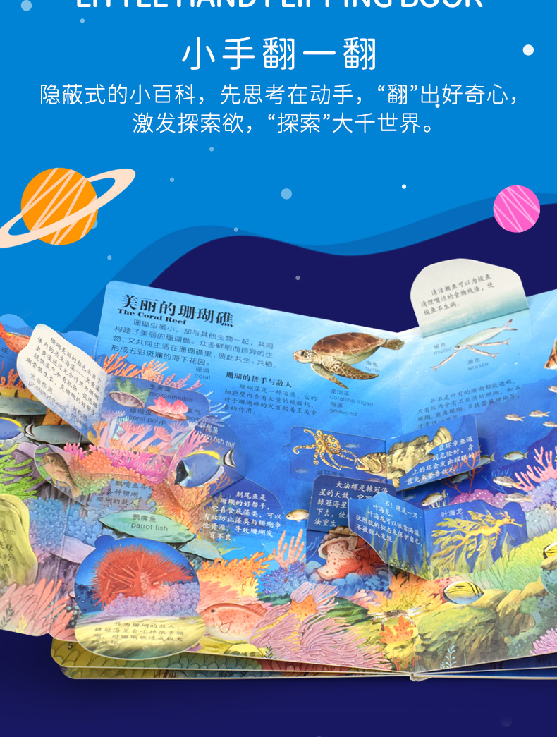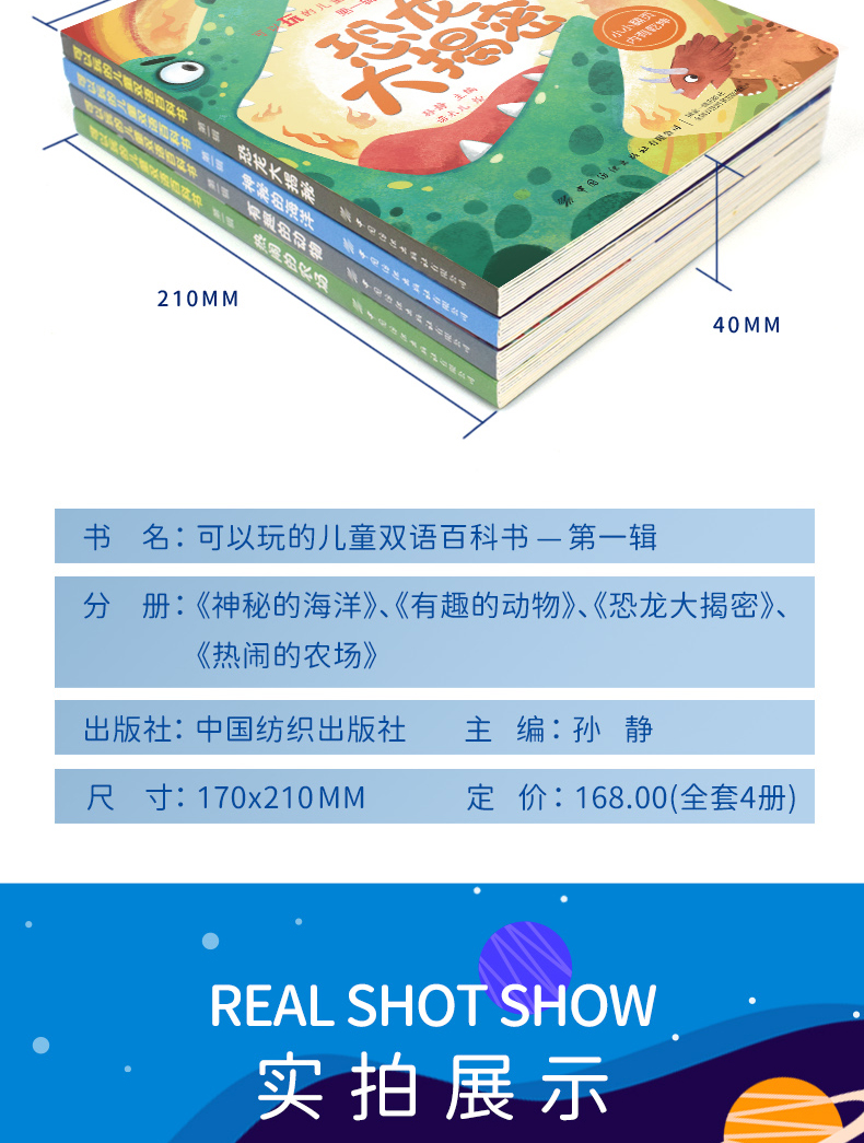 可以玩儿的儿童双语百科书 第一辑4册 神秘的海洋/有趣的动物/热闹的农场/恐龙大揭秘 儿童科普百科书趣味认知儿童3d立体书翻翻书