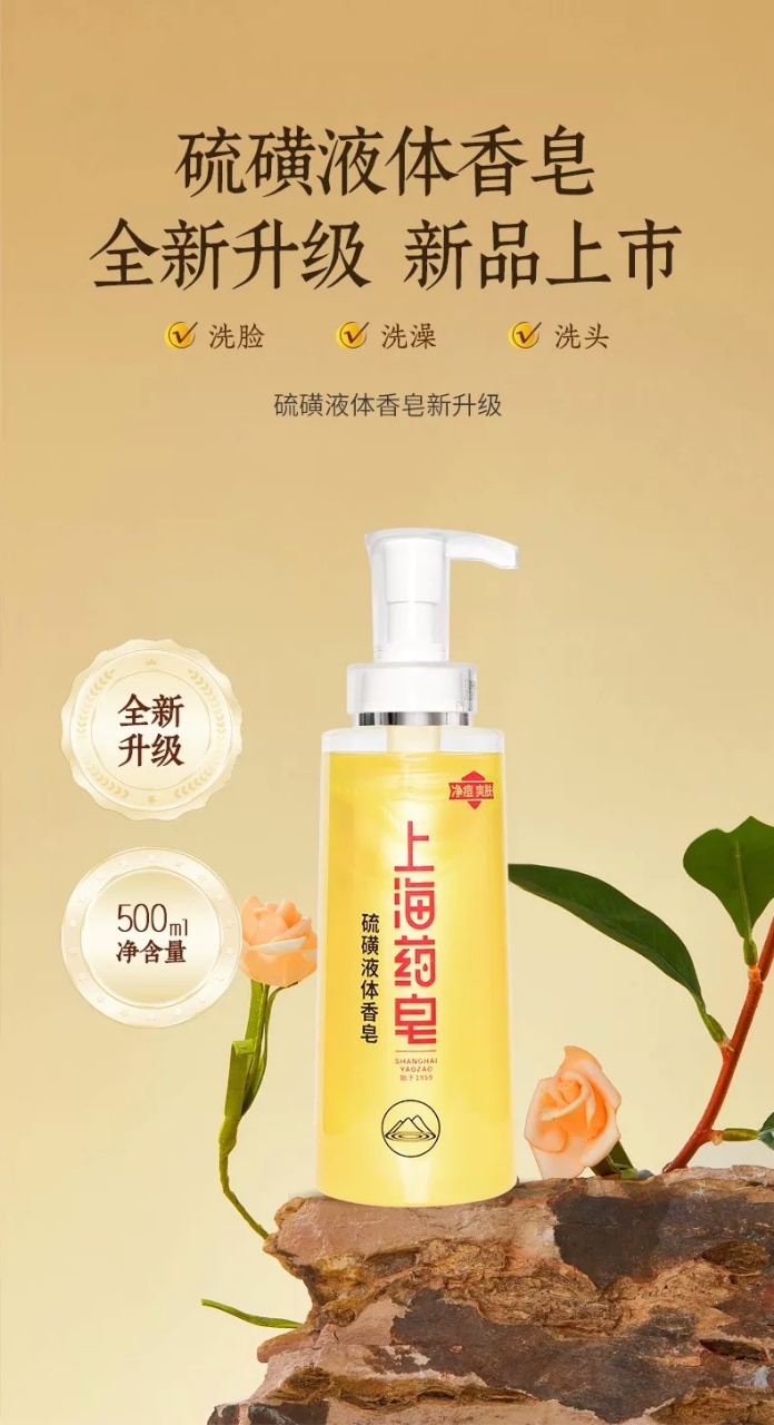 上海药皂硫磺液体香皂(净痘爽肤)/1瓶(500g)限用日期:28年1月