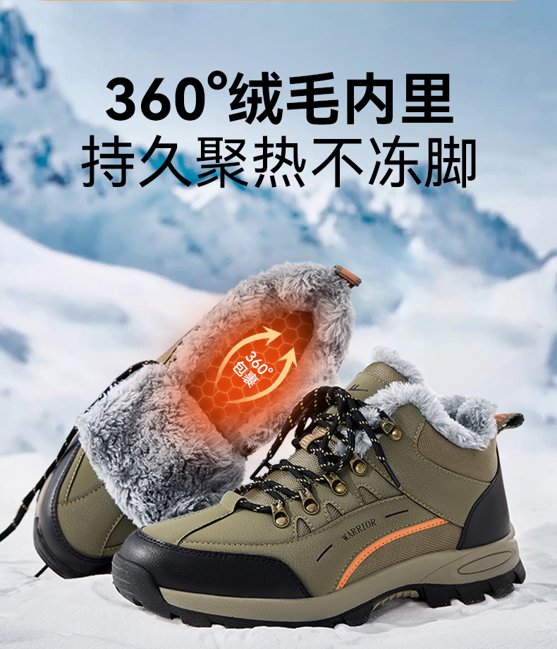 回力雪地靴冬季男款加绒加厚男士户外登山鞋高帮保暖东北大棉鞋男