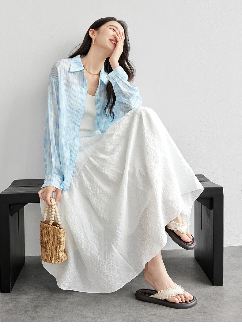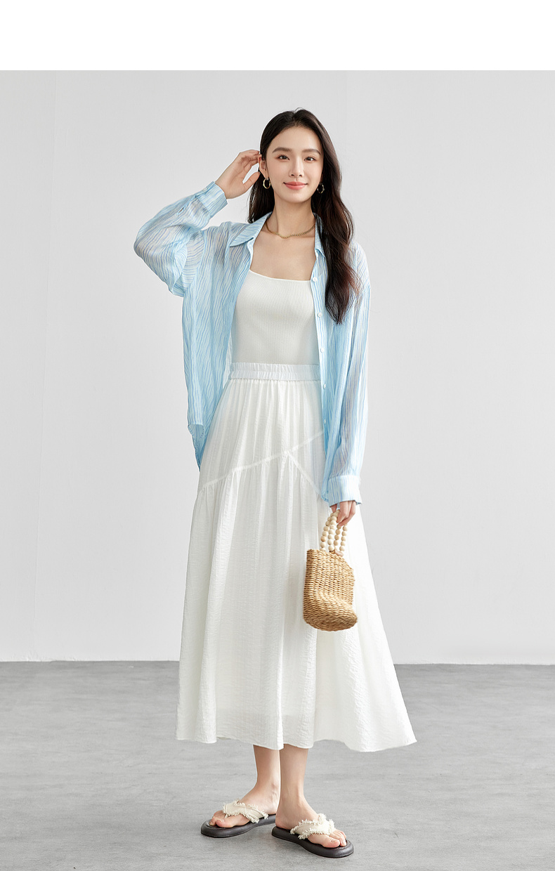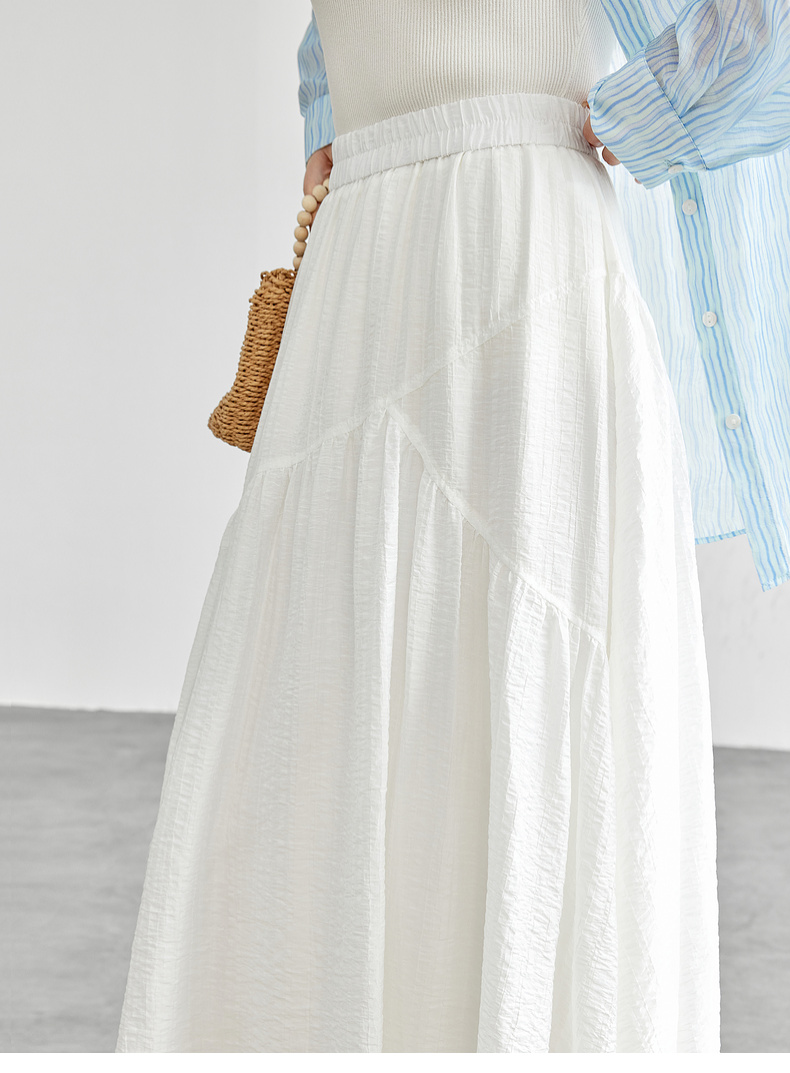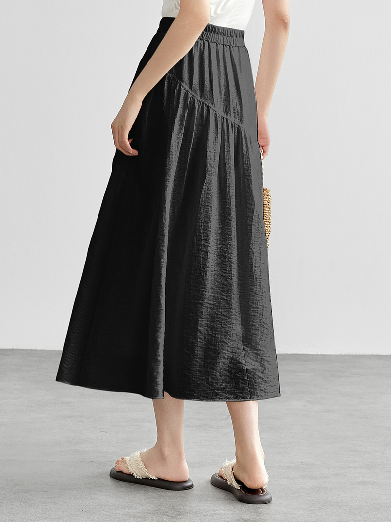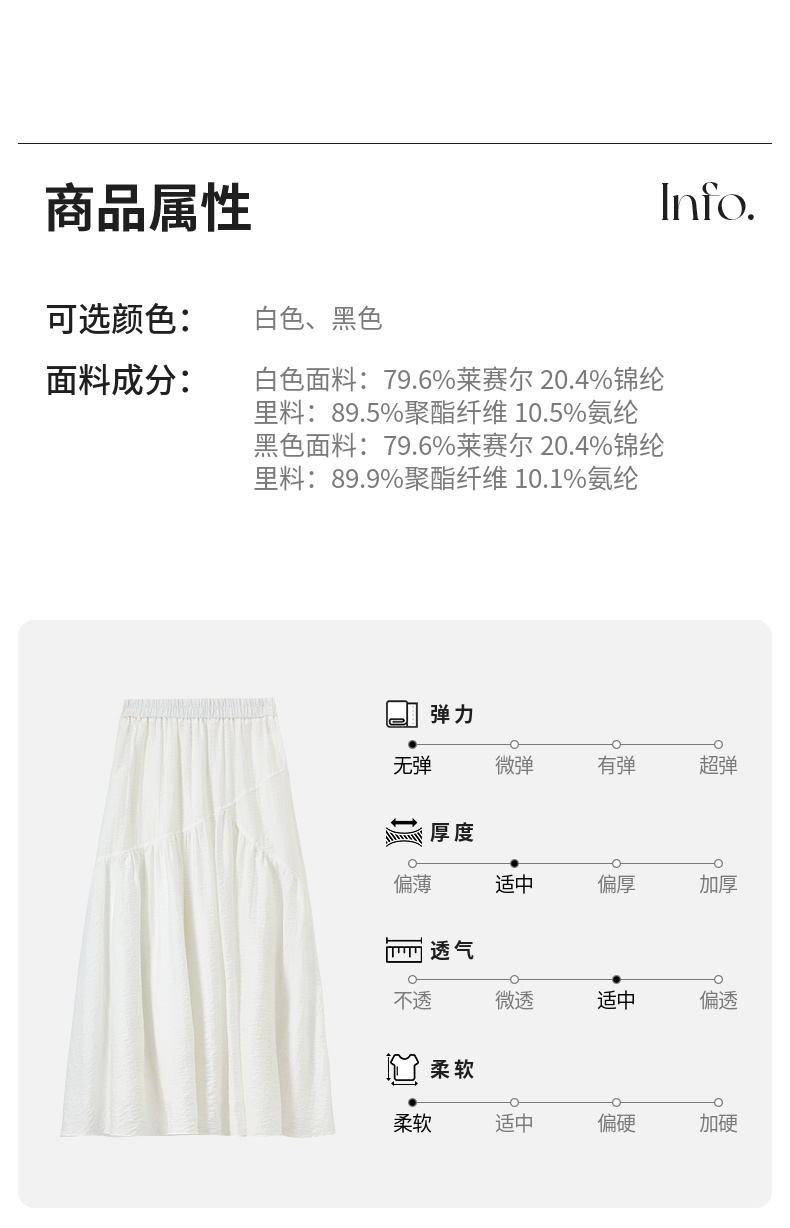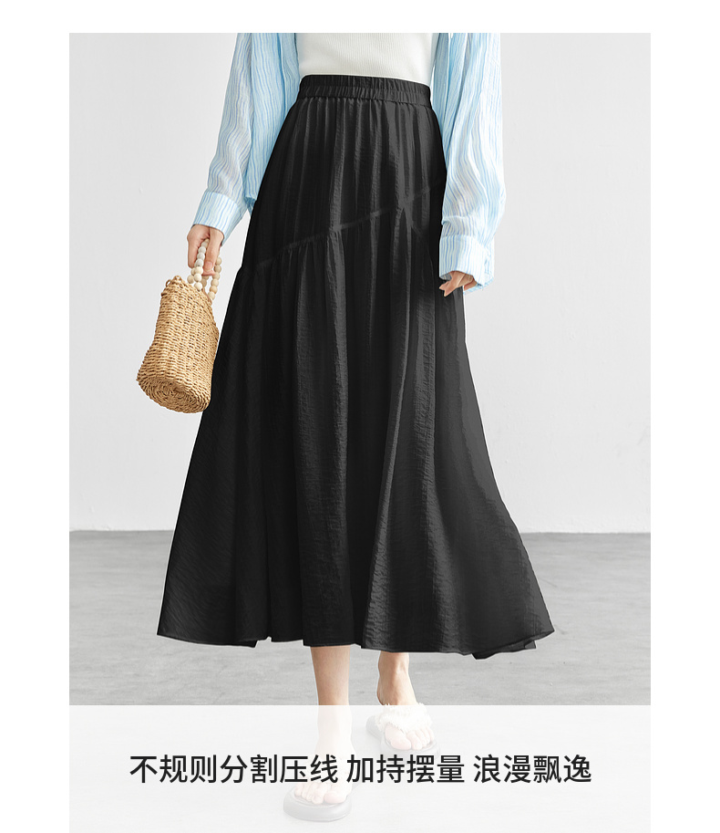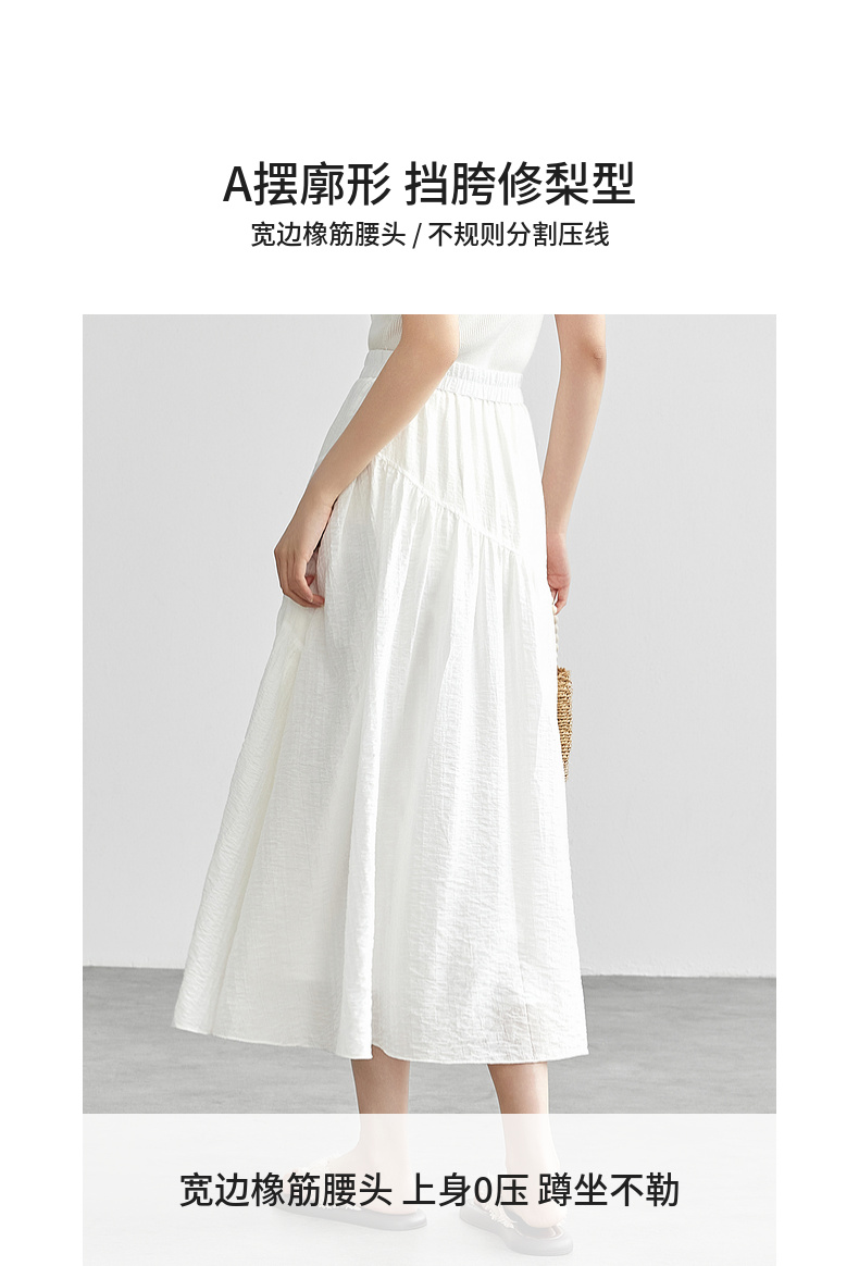 【尚都比拉】优雅度假风含天丝半身裙橡筋腰头不规则分割压线垂感大摆A字裙-151Q58121