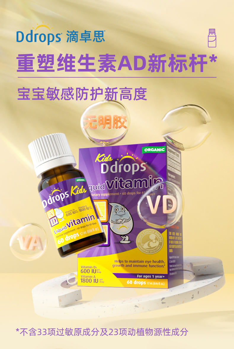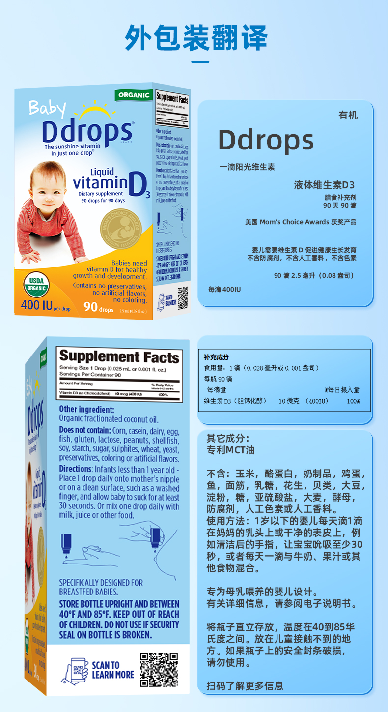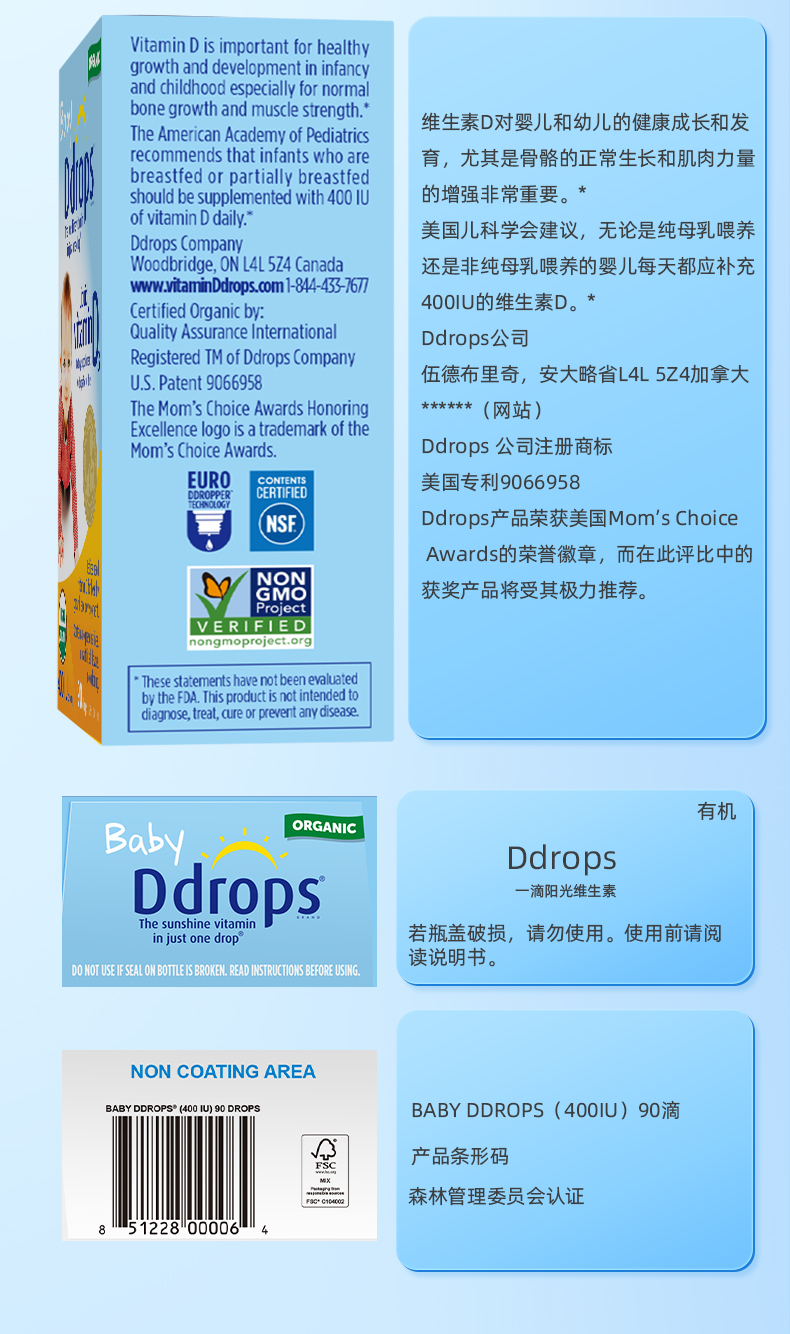 【跨境商品】Ddrops滴卓思婴幼儿维生素D3,AD 400iu600iu 不支持7天无理由,介意慎拍!