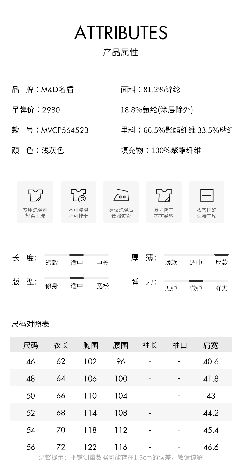 | 品牌: M&D/名盾 | 面料分类: 牛奶丝 |