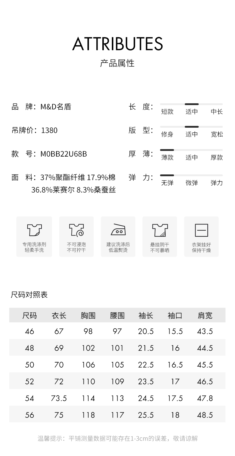 | 男装品牌: M&D/名盾 | 袖型: 常规 |