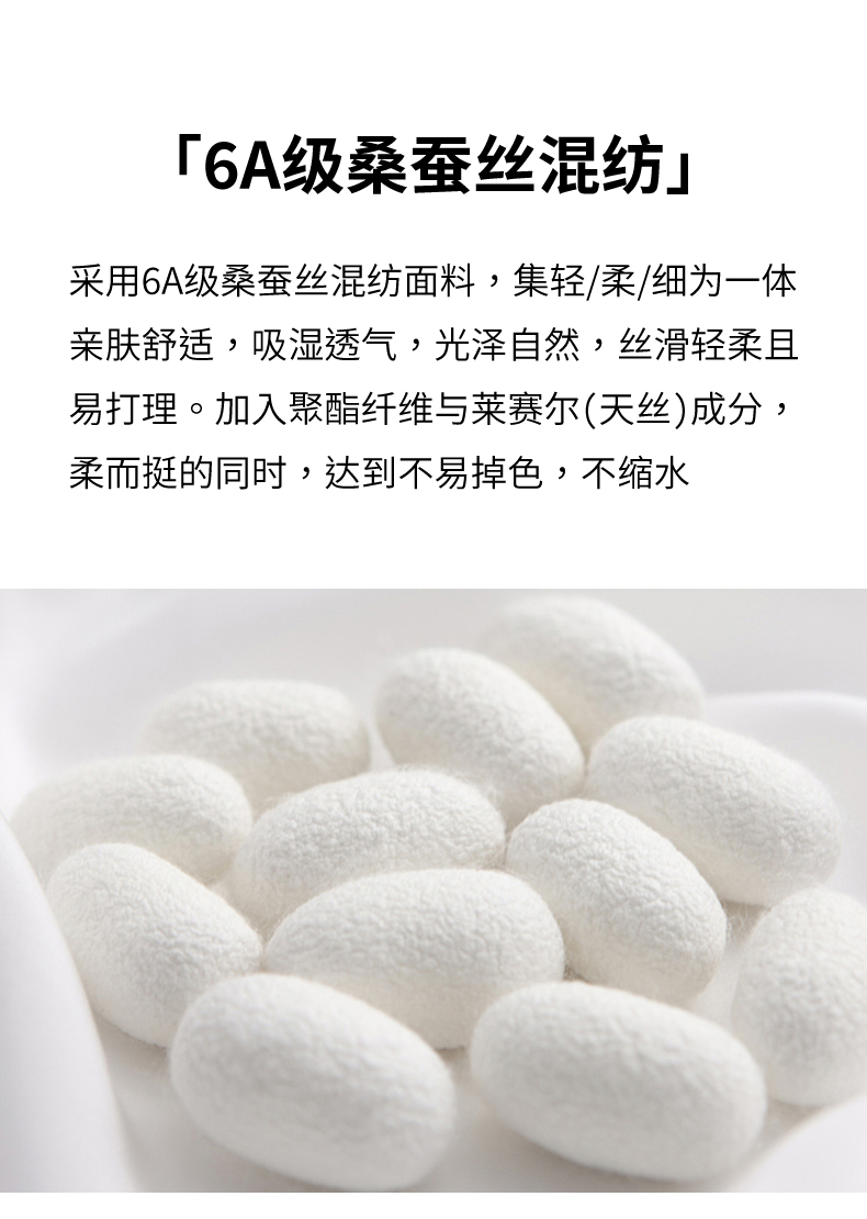 | 销售渠道类型: 商场同款(线上线下都销售) | 材质成分: 聚酯纤维37% 莱赛尔纤维(莱赛尔)36.8% 棉17.9% 桑蚕丝8.3% |