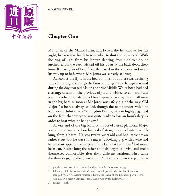 Animal Farm – The Complete Text 包含小说的全文,以及解释人物、主题、上下文等的有用注释!