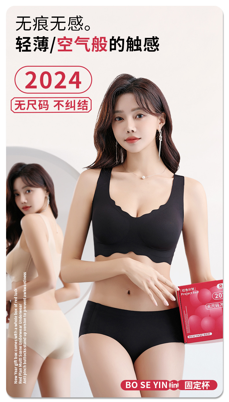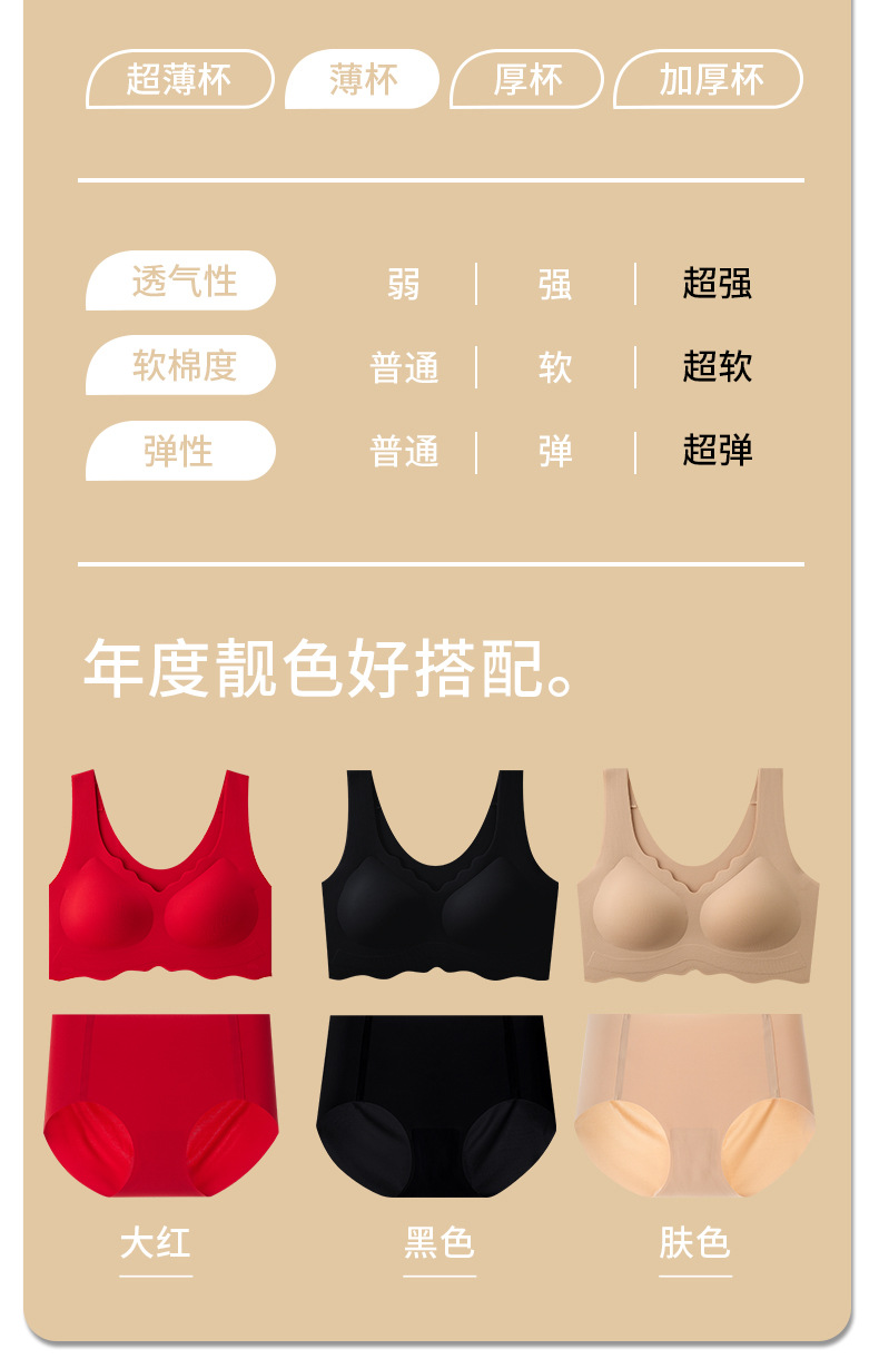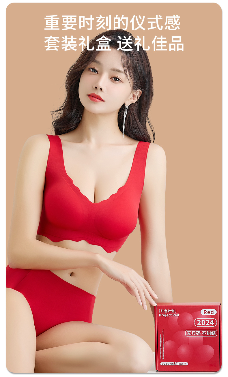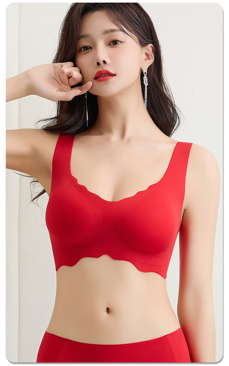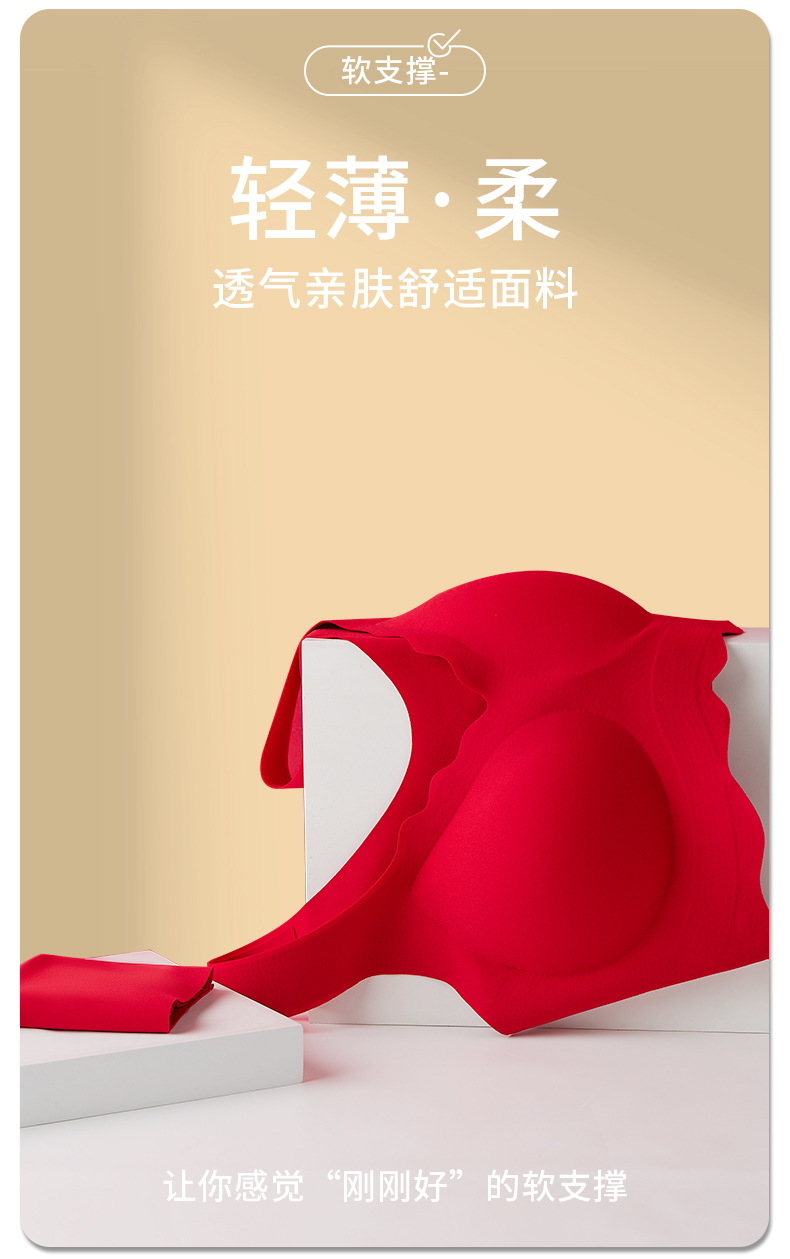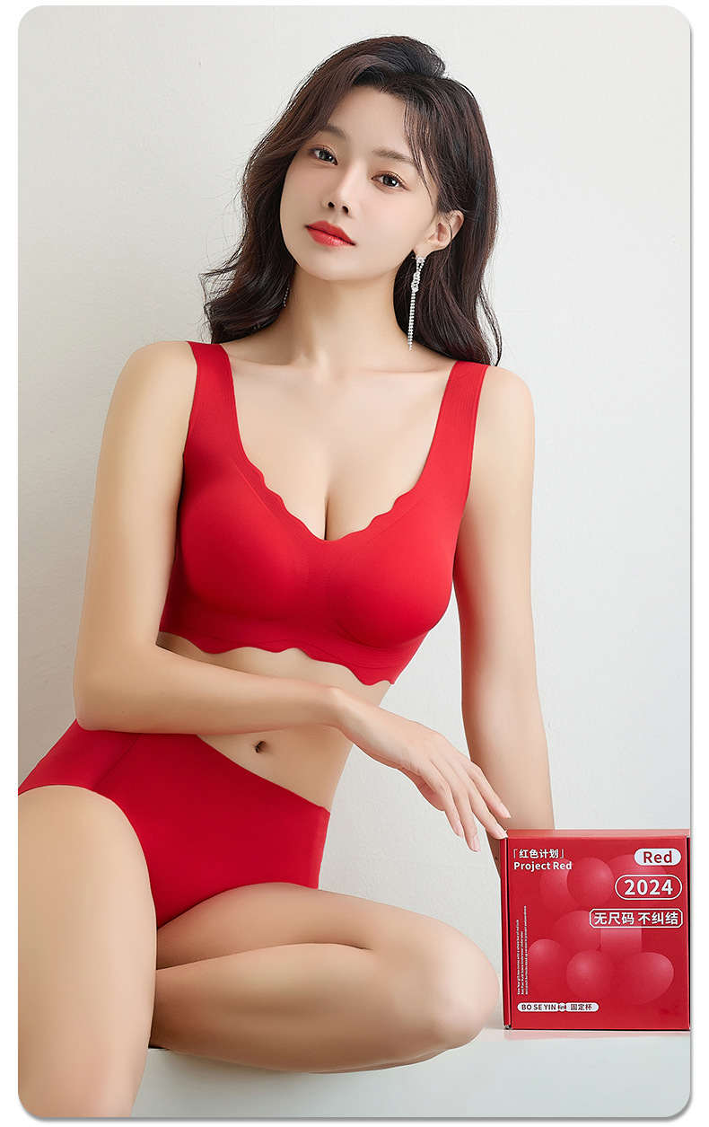本命年新年喜庆【大红色无尺码内衣套装】女款无痕背心 聚拢运动文胸