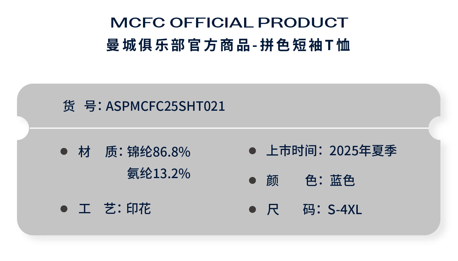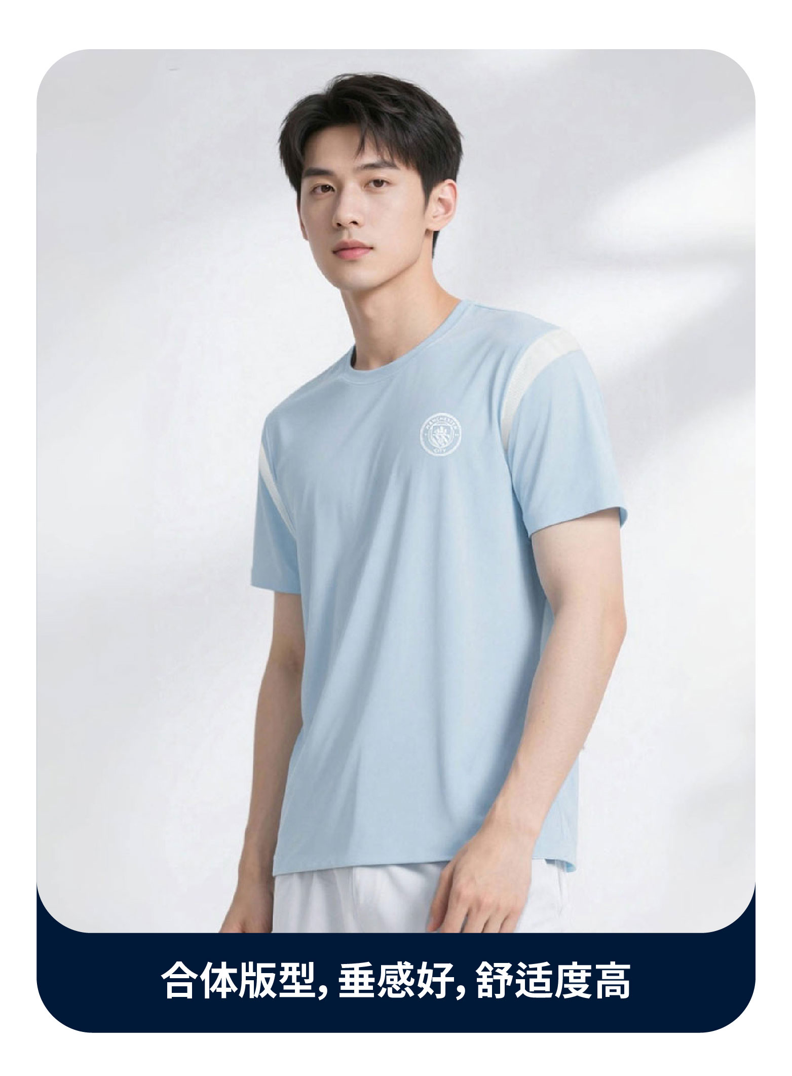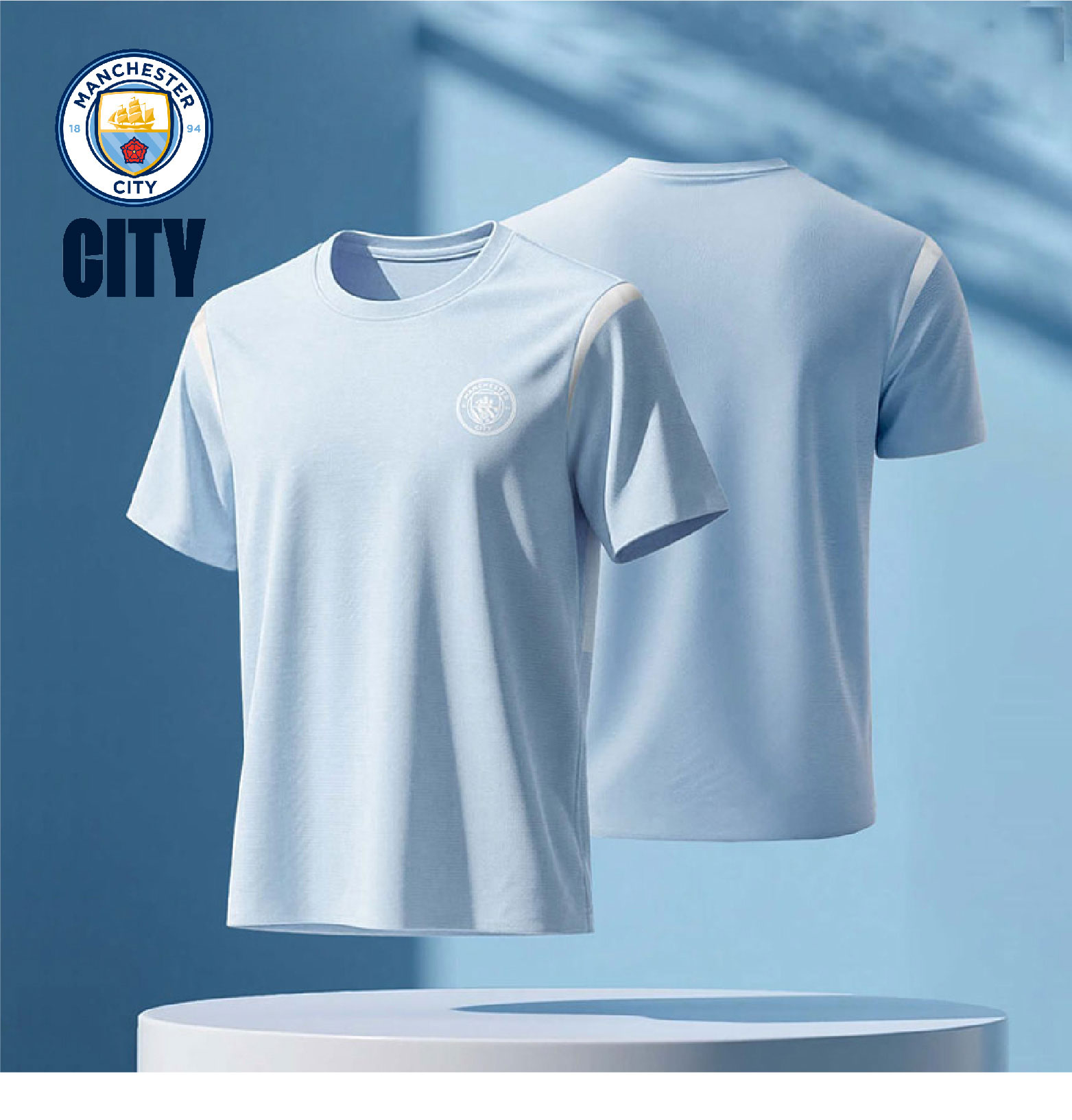 【官方正版】曼城俱乐部 | 蓝白短袖吸湿速干夏日清新运动户外T恤
