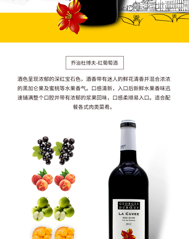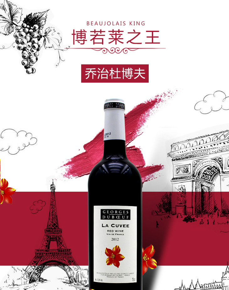 整箱特惠装 法国原瓶进口红酒 乔治杜博夫干红葡萄酒 Cuvee red Georges Duboeuf 750ml*6