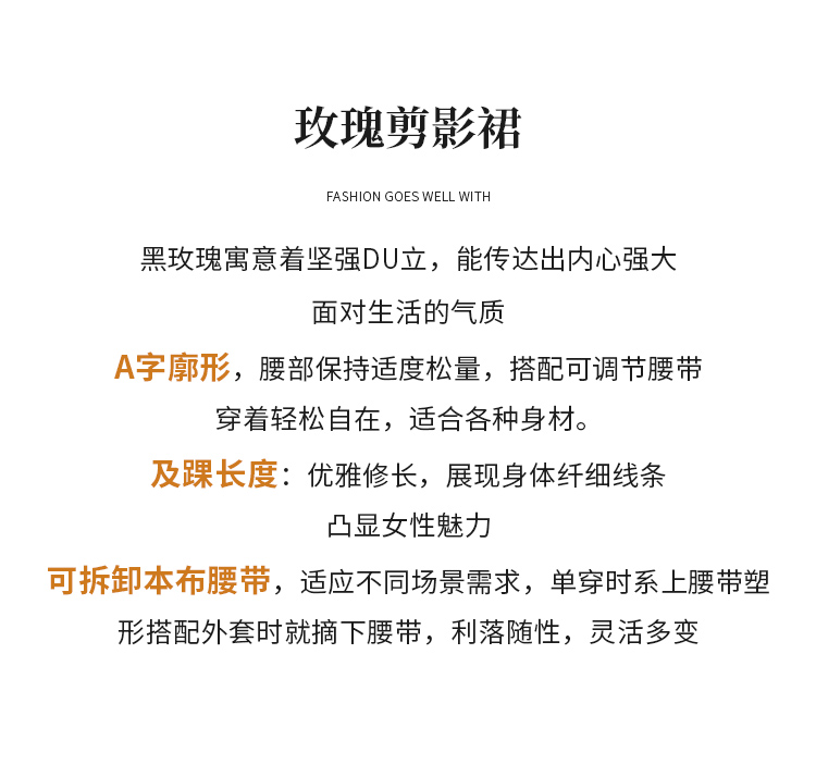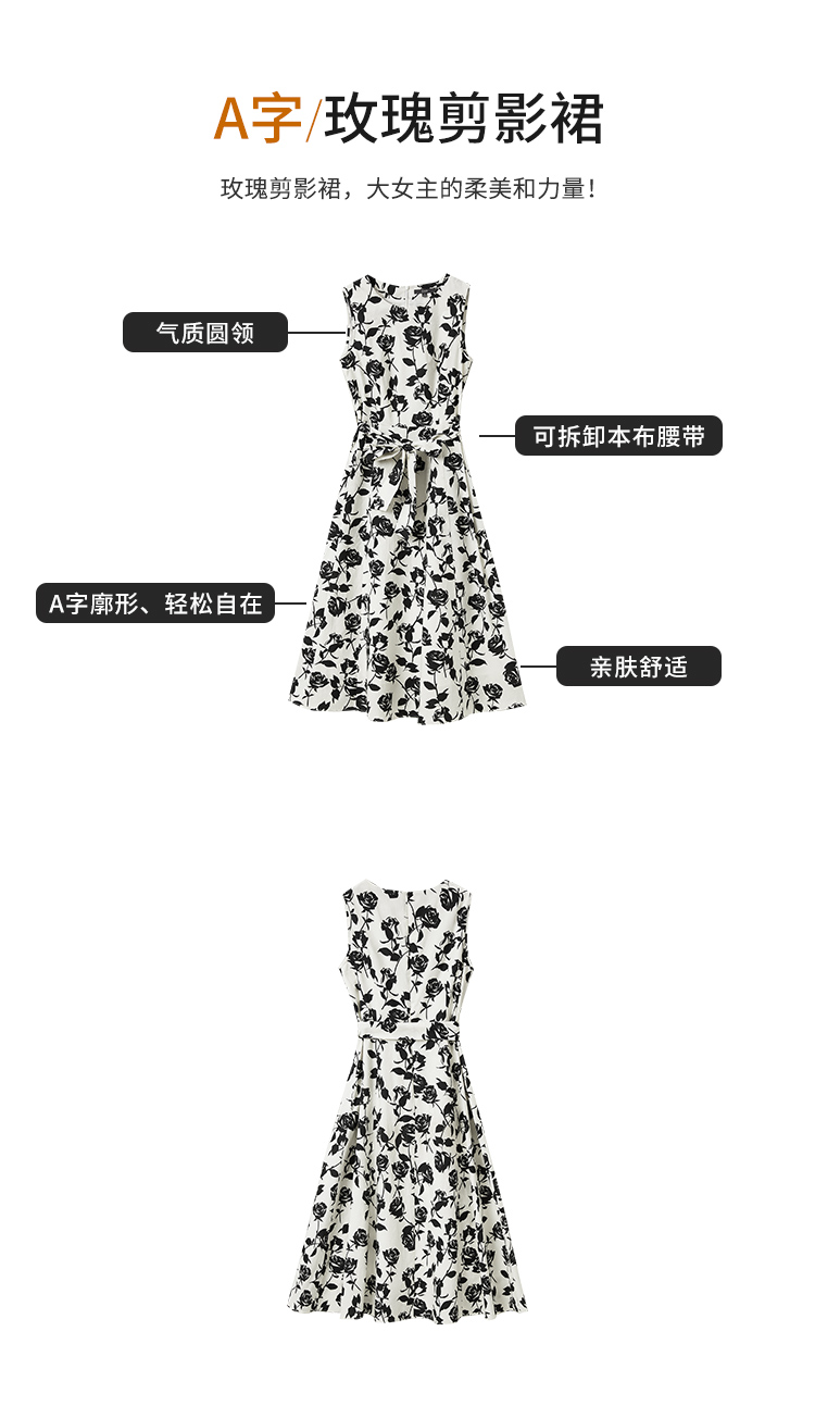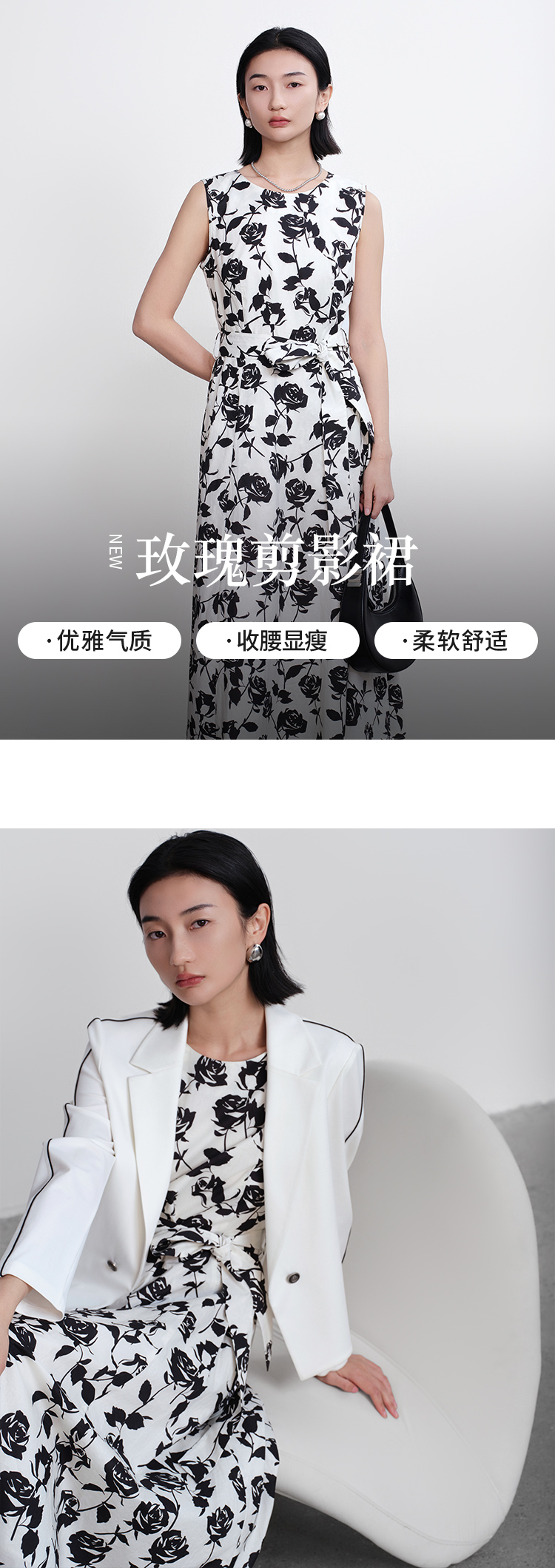 【商场同款】CND5367 “ 玫瑰剪影裙 ” 亲肤舒适 轻盈而坚韧 花型连衣裙
