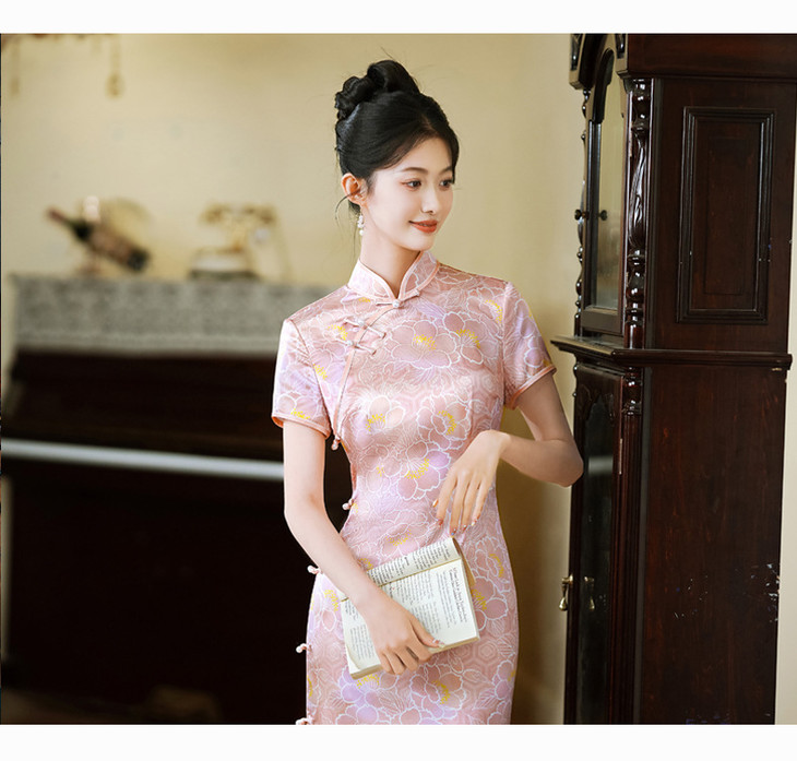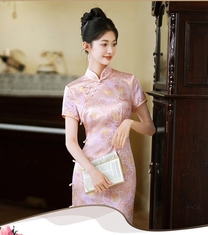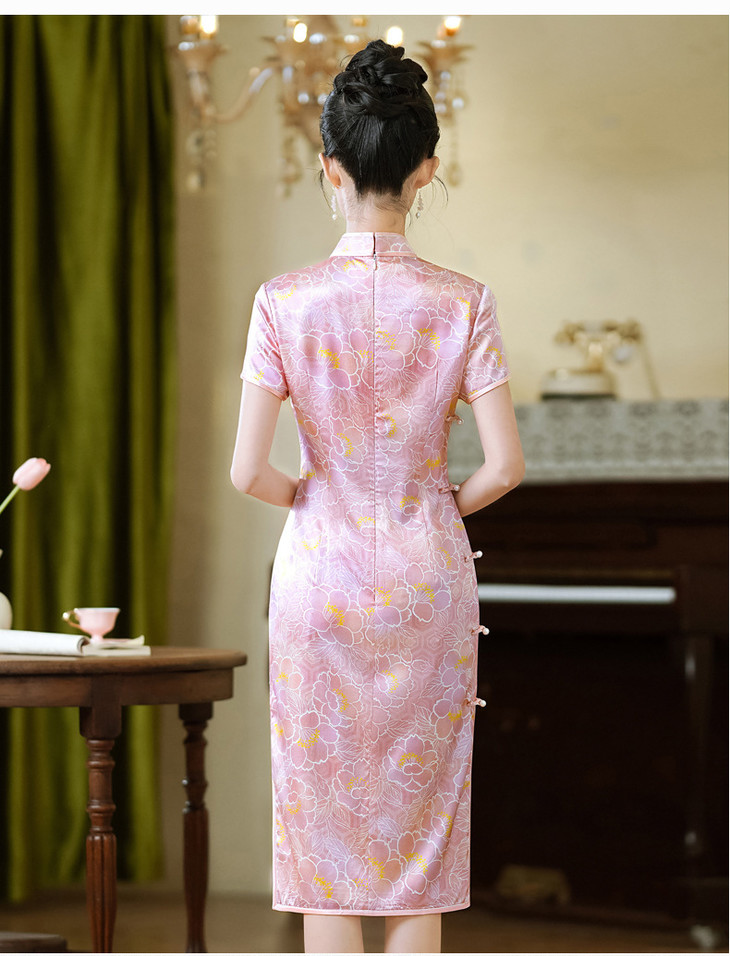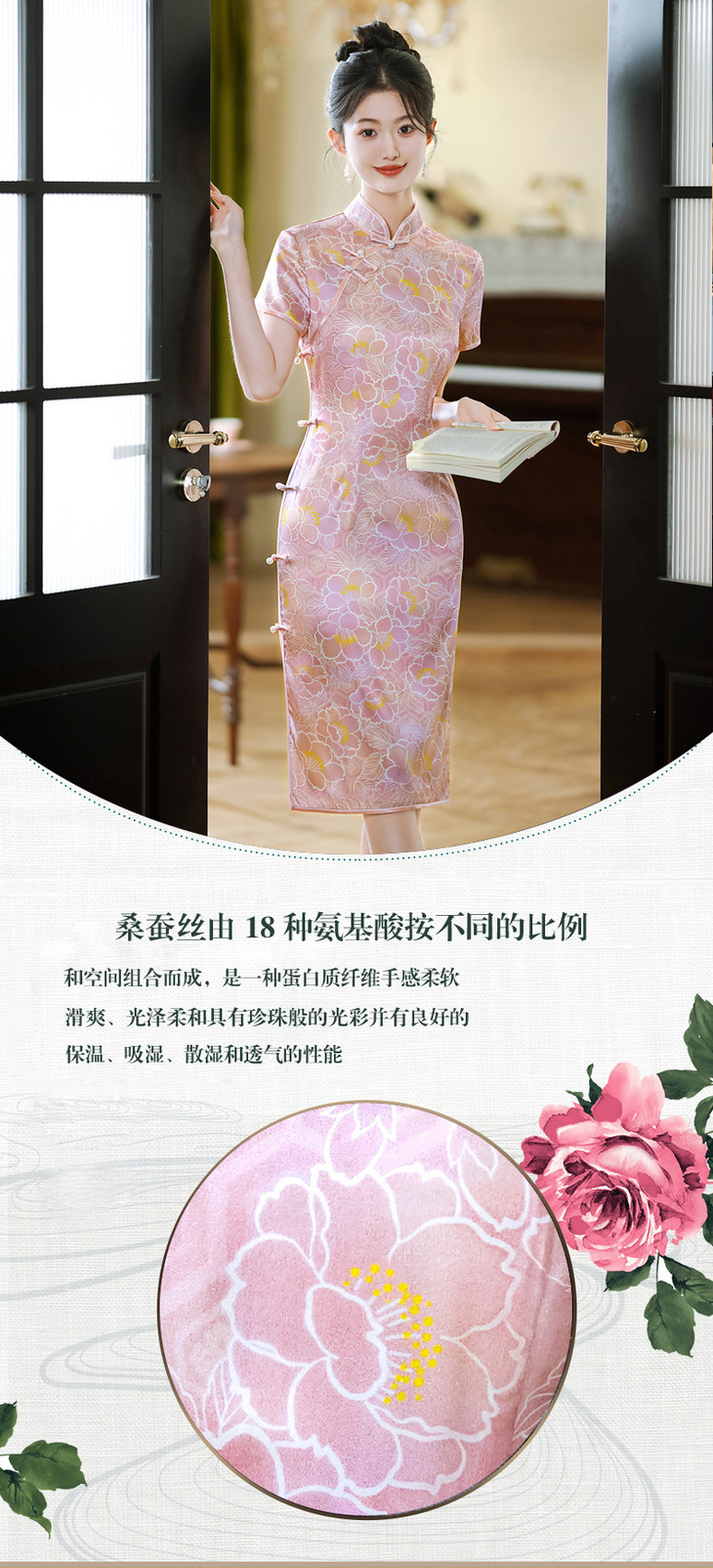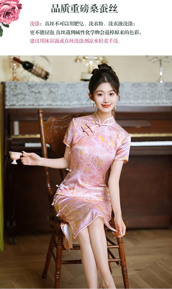 真丝旗袍中式桑蚕丝连衣裙手工缝制WXG