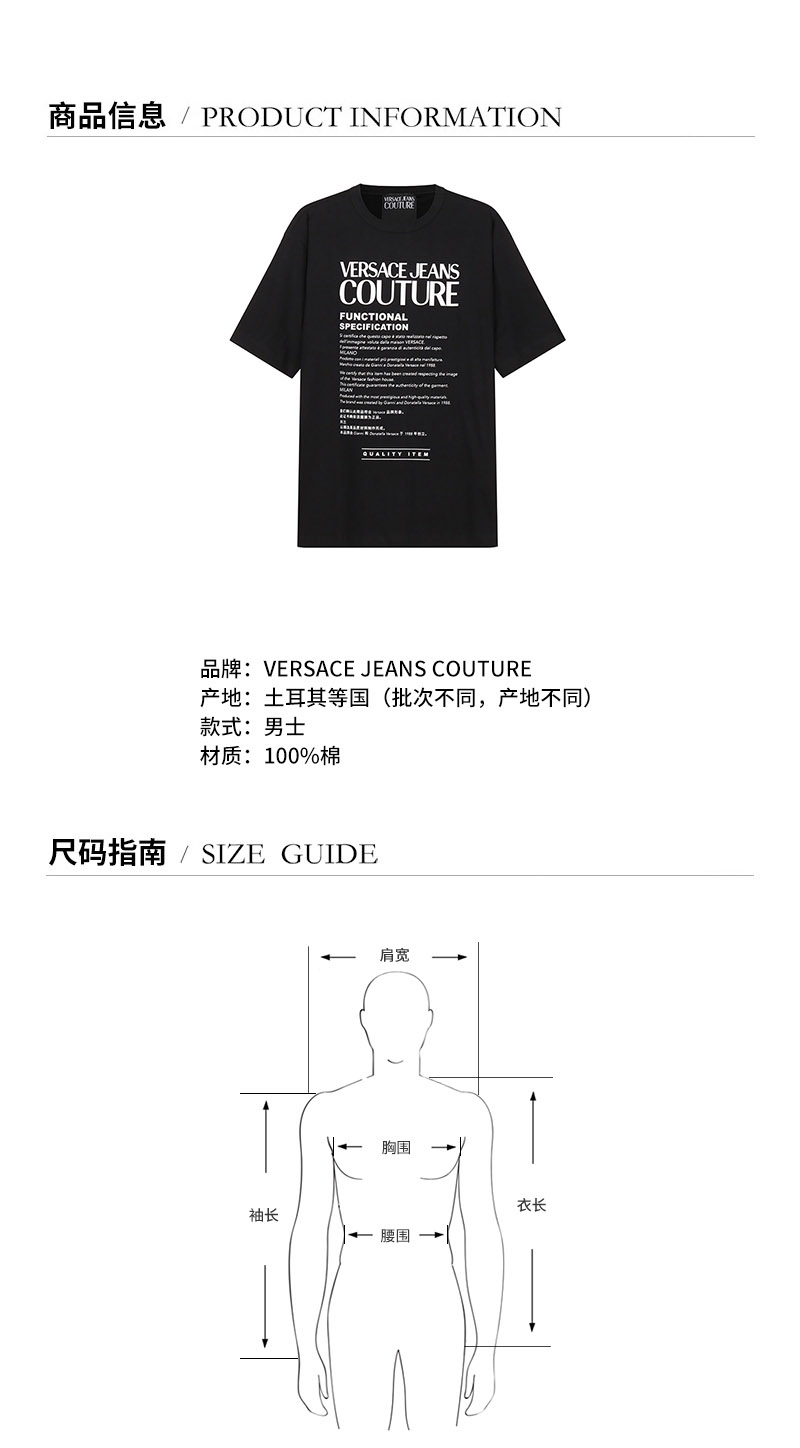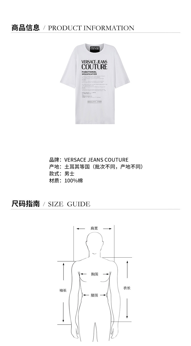 VERSACE JEANS COUTURE范思哲【22春夏新款】男士棉质宽松版圆领短袖T恤LOGO图案 72GAHT21 CJ00O