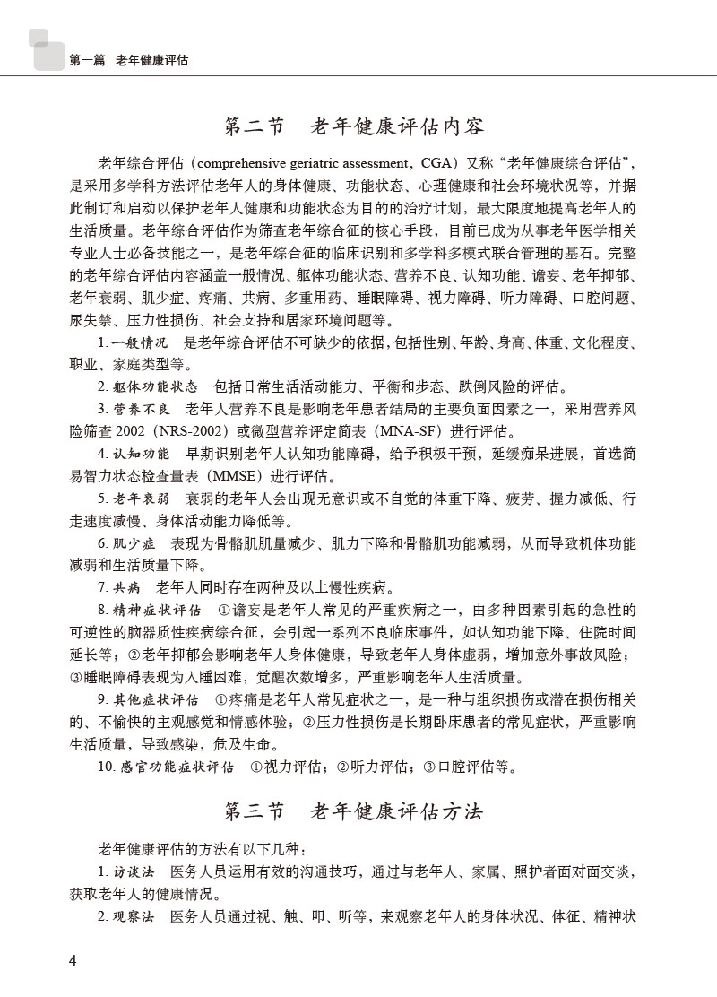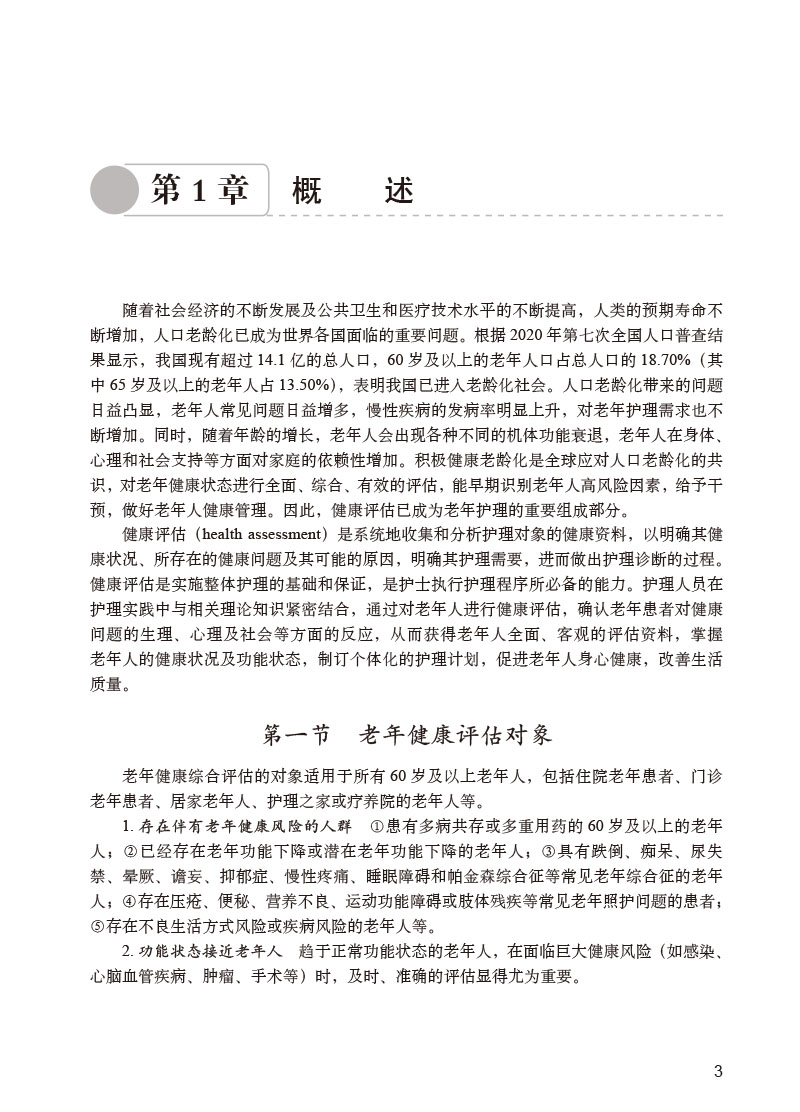 本书分为两篇,涵盖了老年疾病诊疗护理的关键内容。第一篇为老年健康评估,内容包括概述、老年人躯体功能健康评估、老年人精神心理状态评估、老年人社会健康评估及老年康复评估等;第二篇为老年专科护理与康复护理常规,介绍了老年常见症状护理常规、老年常见疾病护理常规、老年康复护理常规等。本书将老年临床护理行为规范与新技术、新理念有机结合,融入护理评估、护理关键点、护理措施及健康指导各环节,加强临床护士诊疗技术的规范化和标准化,实用性强。