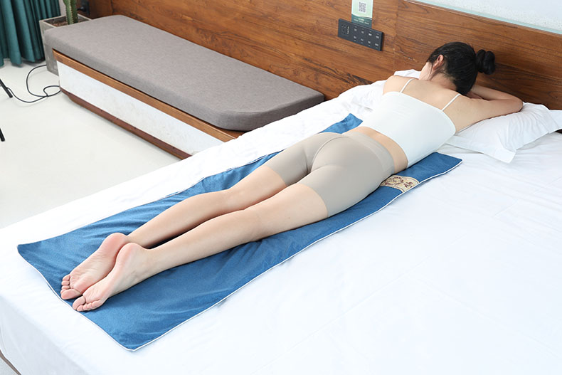 2、加热艾灸毯时,不管是盖身上艾灸正面,还是垫在身下艾灸背部,都不能再盖被子上去把整张给覆盖住了哦,不然不利于湿气排出。