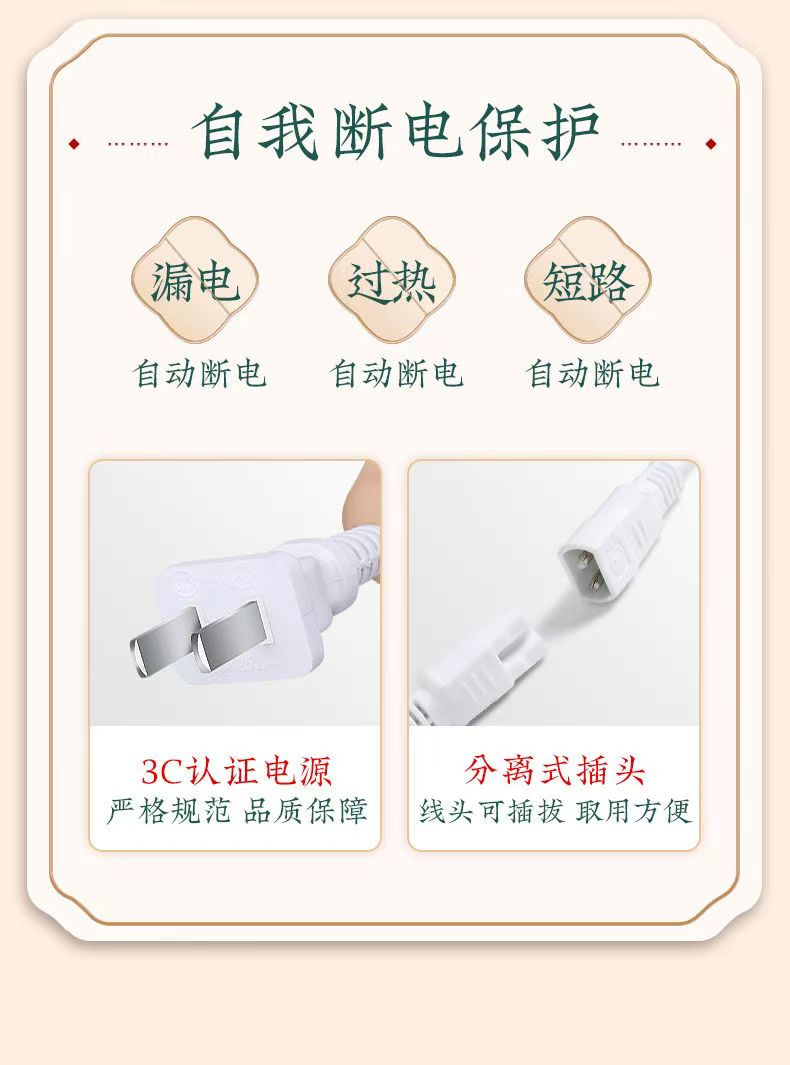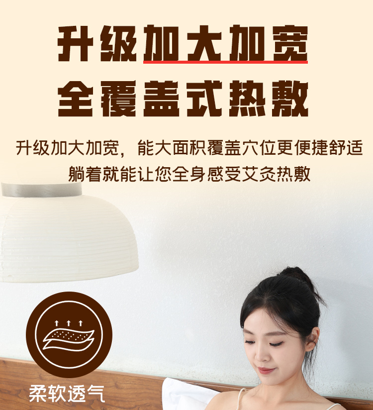 全面覆盖穴位,快速加热,持续保暖。多种用途,可铺可盖,坐着、躺着、趴着,随心所欲,老少适宜。