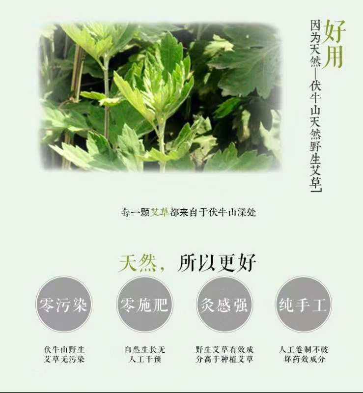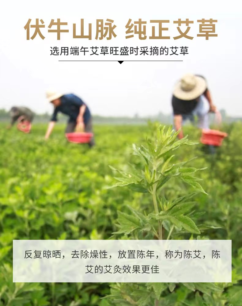 精选伏牛山端午前后采摘的艾草,阳气充足,陈放后提取艾绒填充内芯,功效更佳!