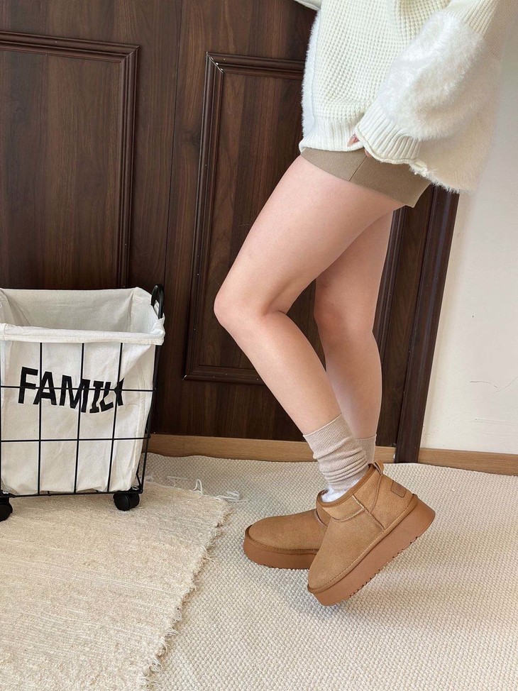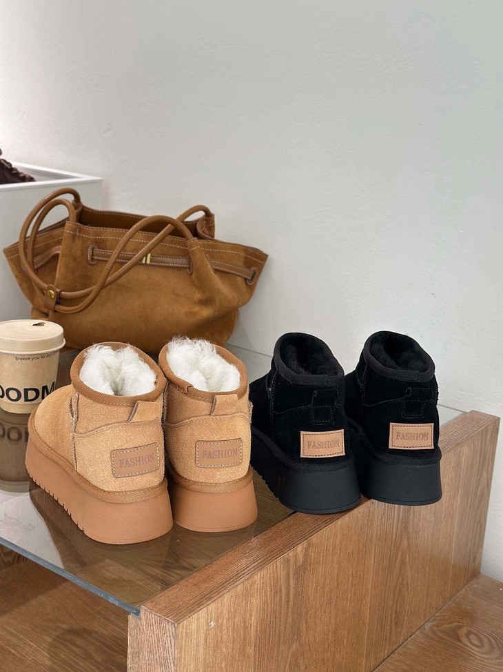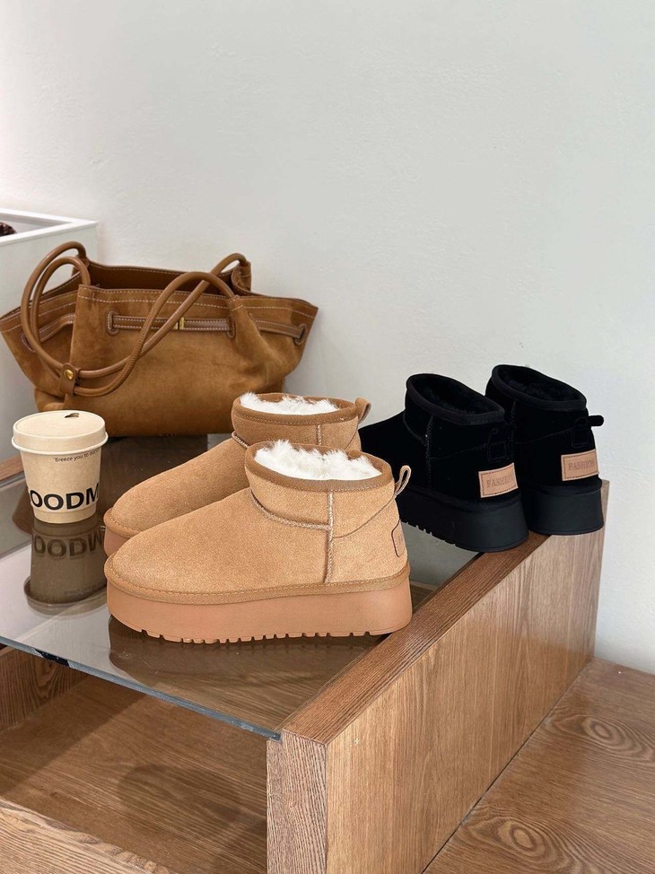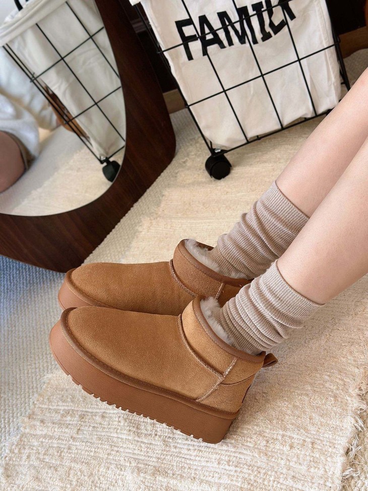 周冬雨同款厚底雪地靴!增高还能这么暖🔥 周冬雨同款的版型,真皮+皮毛一体的材质~ 摸起来软 fufu的~厚底直接把腿拉长,小个子姐妹狂喜! 加绒加厚的设计,东北的冬天穿它都不冻脚! 搭配黑色leggings和皮夹克,甜酷风拉满,配个毛绒卫衣又很日常,真的巨百搭! 日常通勤、逛街都能穿🥰
