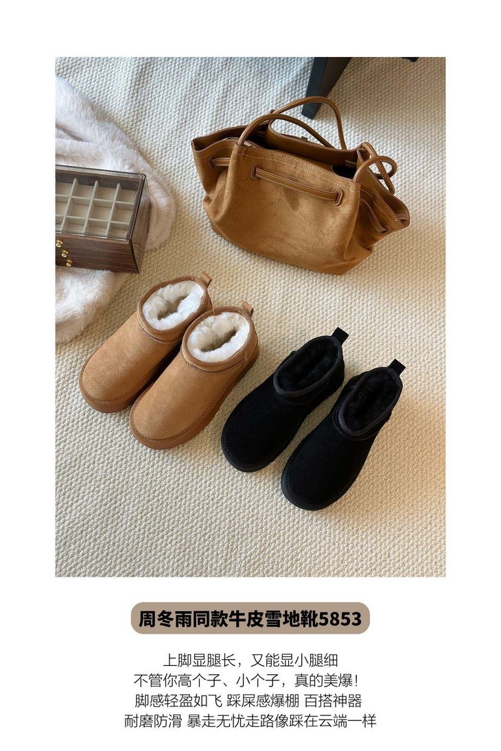 💥【周冬雨同款牛皮雪地靴5853】大爆款来袭‼增高4cm、头层牛皮‼ 一脚蹬大东北也可以过冬,🌟经典色系好穿万年经典不过时~ 跟着明星学穿搭|