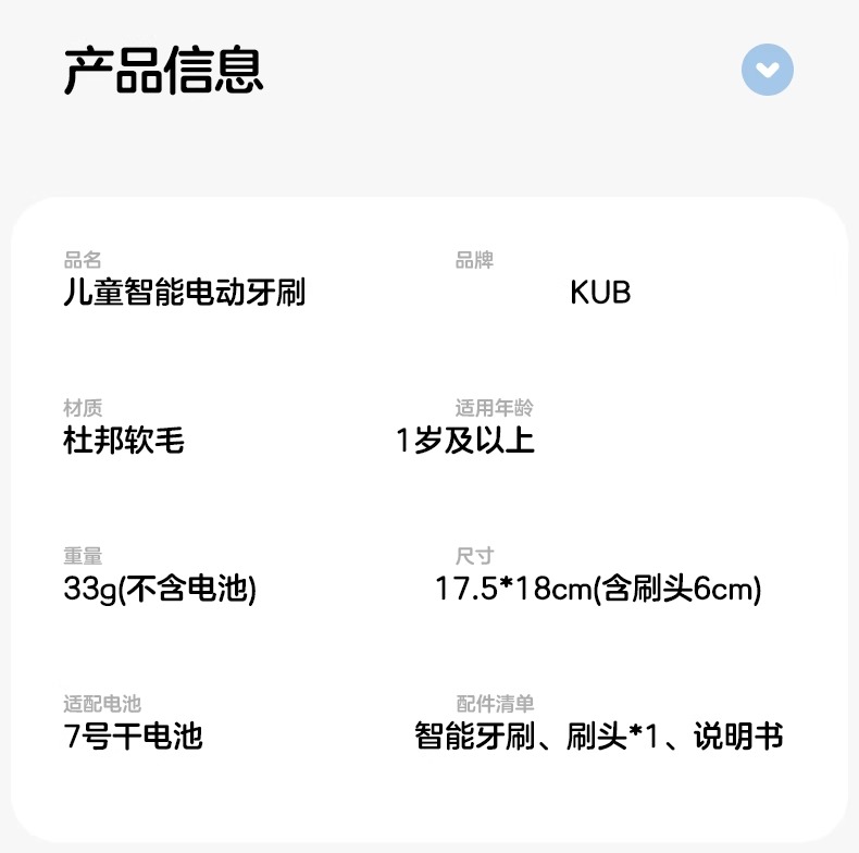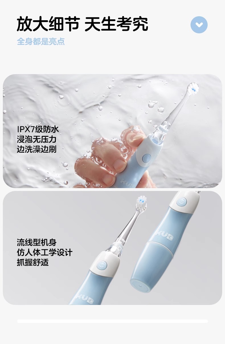 KUB可优比儿童电动牙刷儿童专用电动牙刷全自动软毛刷含氟刷丝