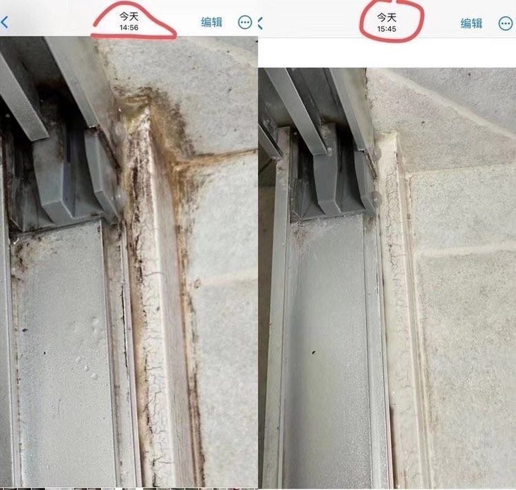 🔺真实反馈3 喷前、喷后对比 家里的霉渍重灾区 真的要用除霉剂才能处理干净⚠️ 懒人用它 虽然不能做到完美还原 但到眼见不烦的程度 还是轻而易举的