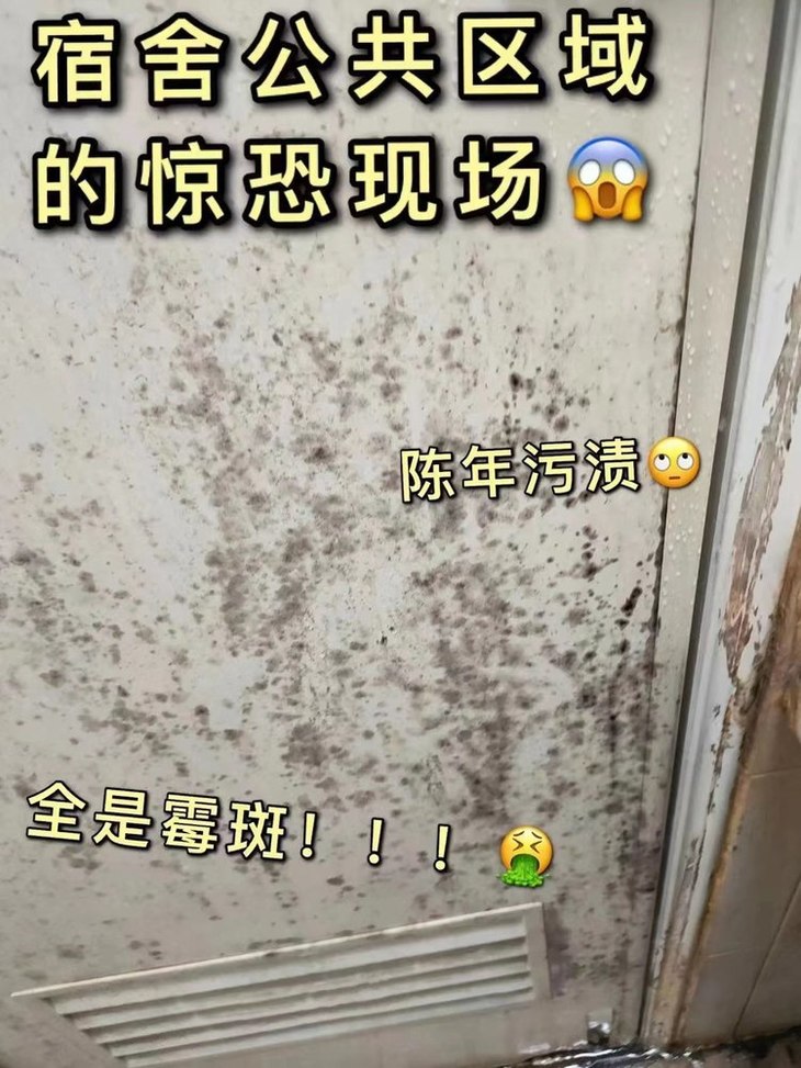 宿舍等公共区域,住久了加上霉雨天气 导致墙面和门上全是陈年污渍和霉斑❗️❗️