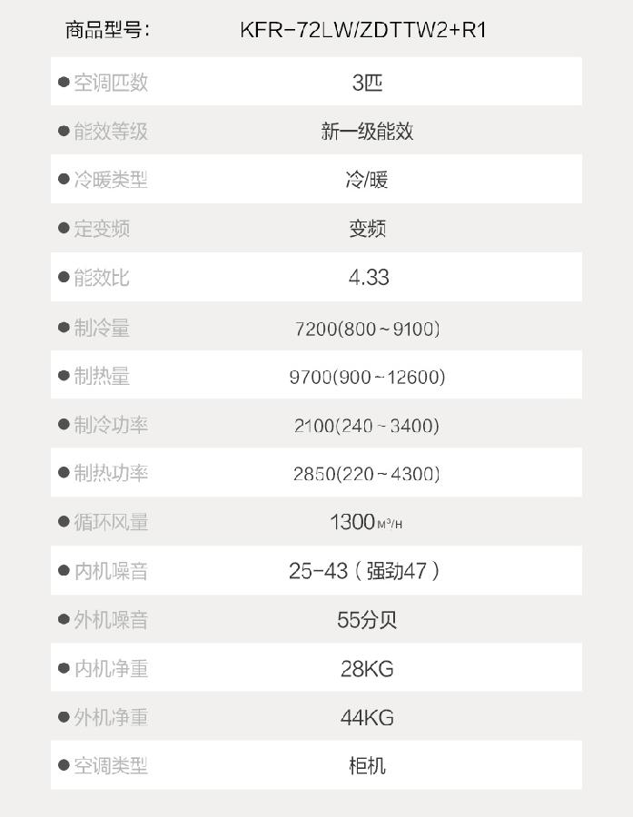 广电优选 长虹KFR-72LW/ZDTTW2+R1大3P变频一级能效 柜式空调