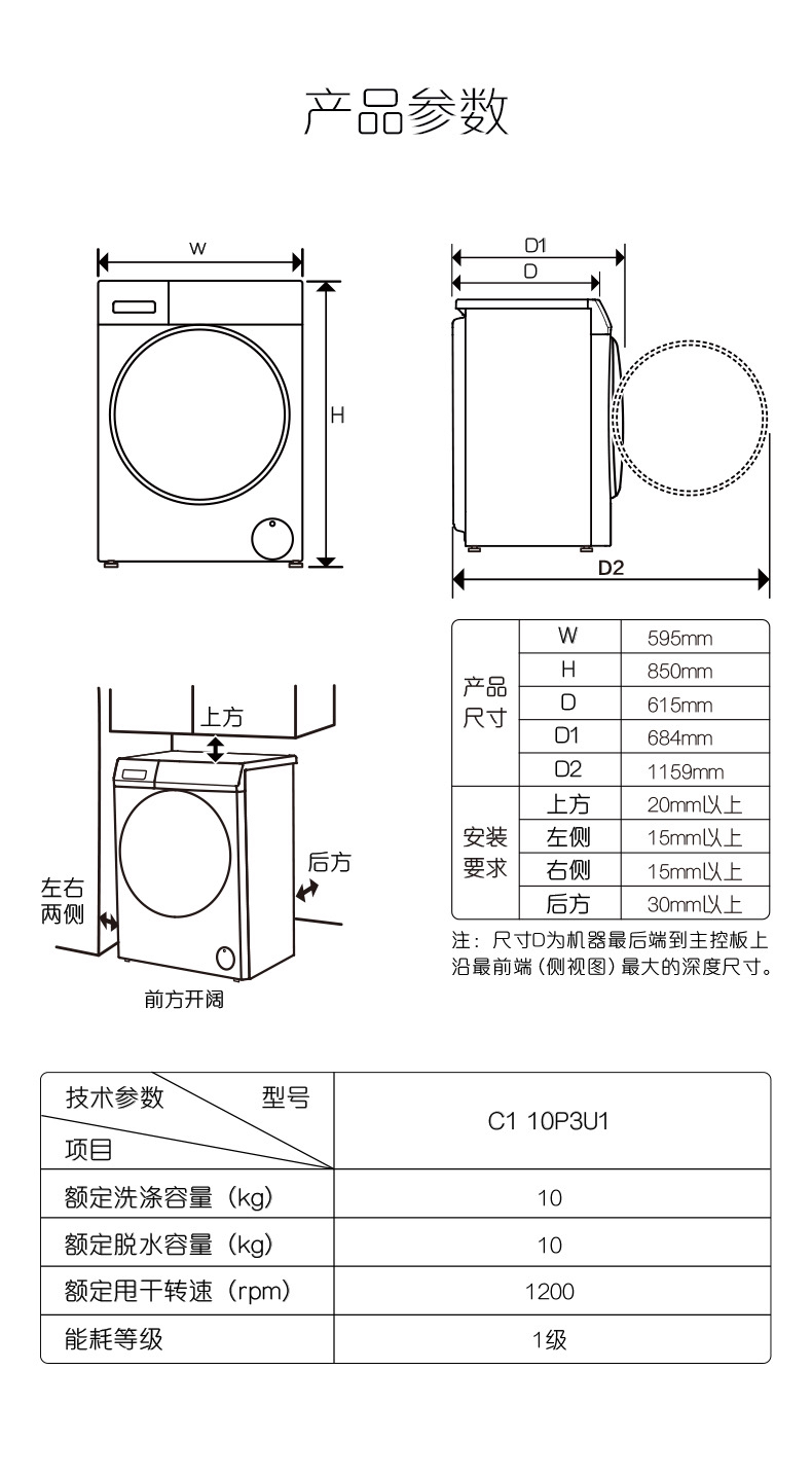 卡萨帝(Casarte)洗衣机 C1 10P3U1