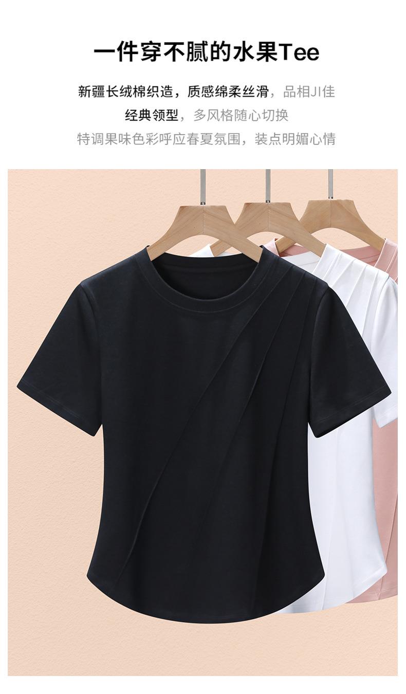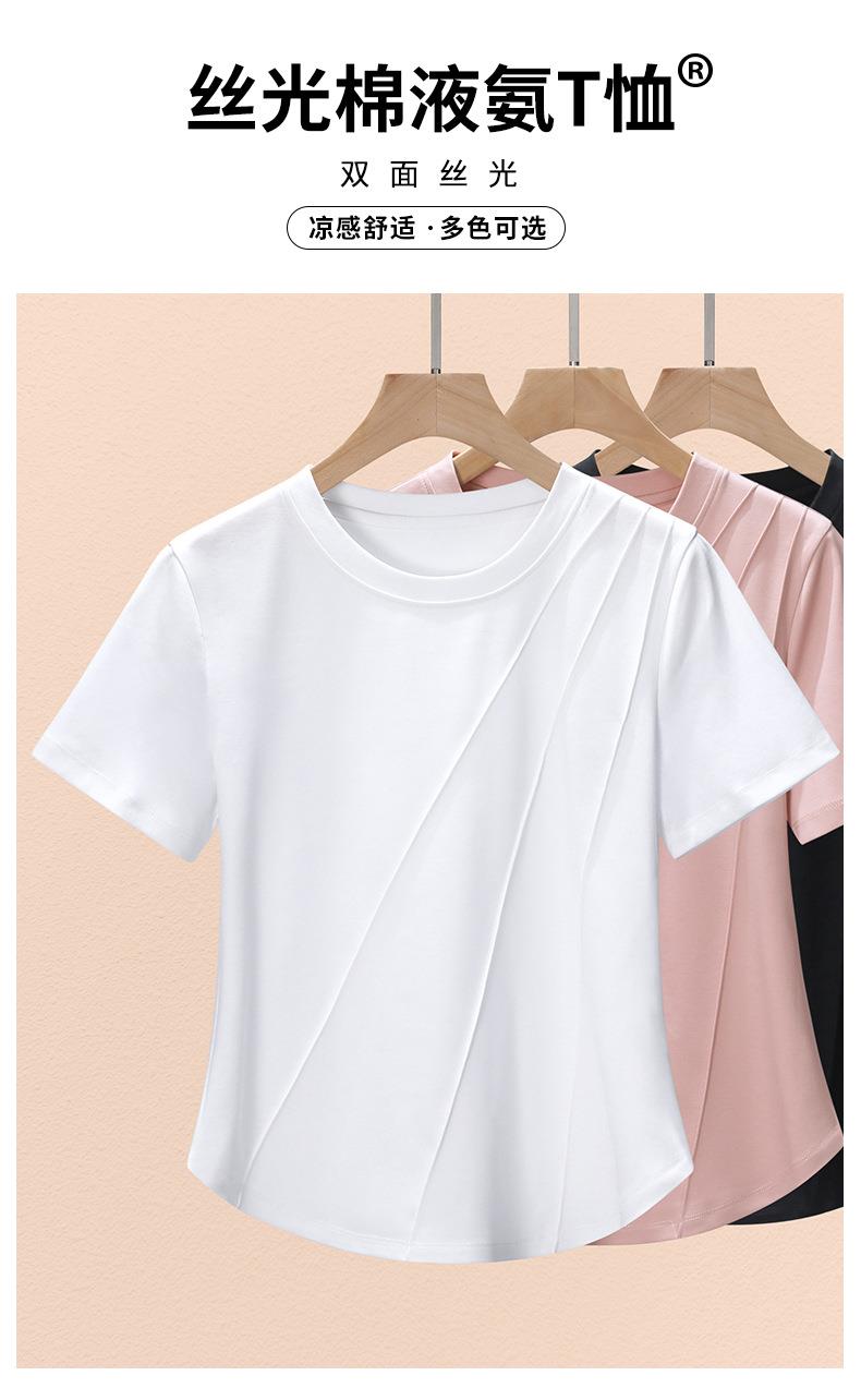 丝光棉短袖t恤女凉感正肩2024夏季新款休闲宽松打底衫