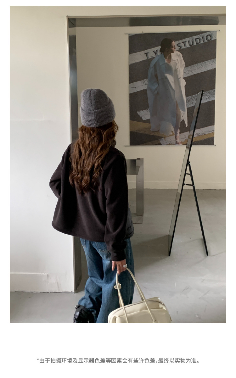 秋冬新款摇粒绒外套 鸭绒保暖上衣百搭潮流拉链开衫