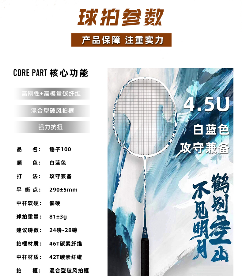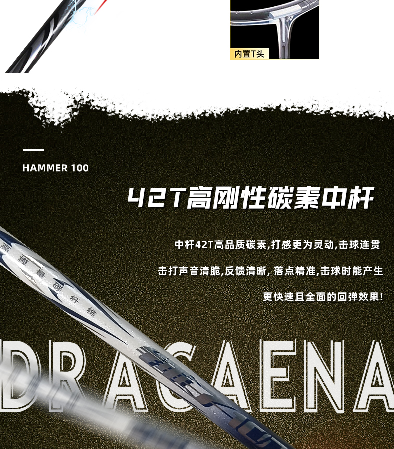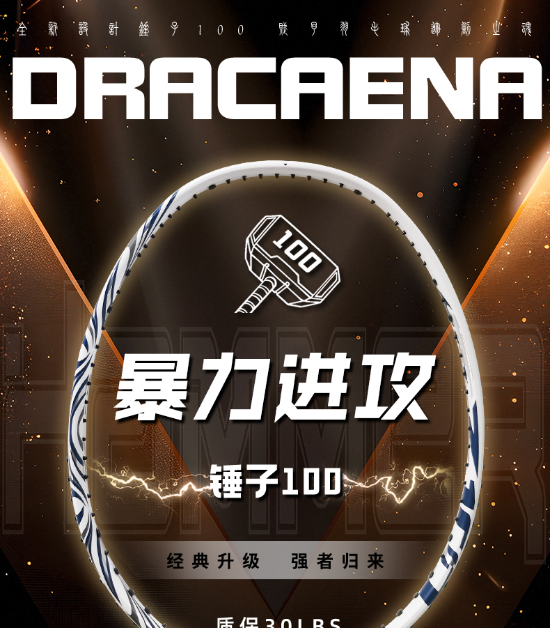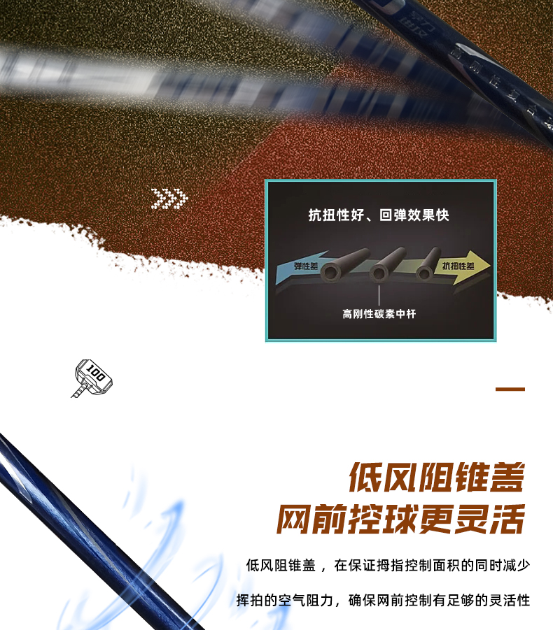 的幸锤子 100 进攻拍 46T 高刚性碳纤 混合破风框攻守兼备单拍
