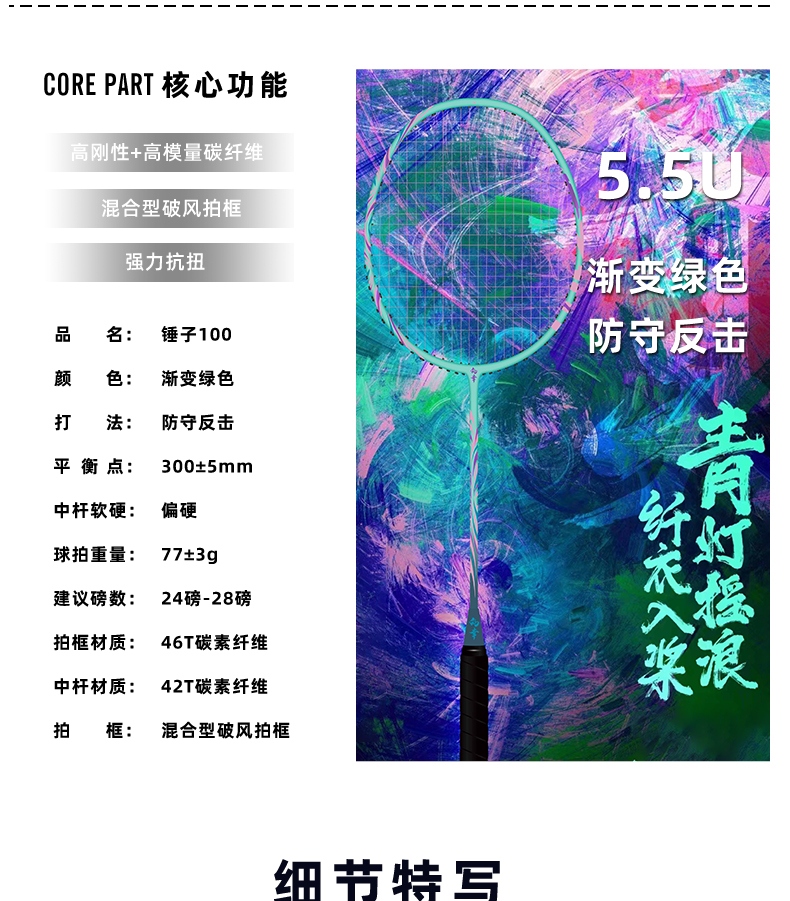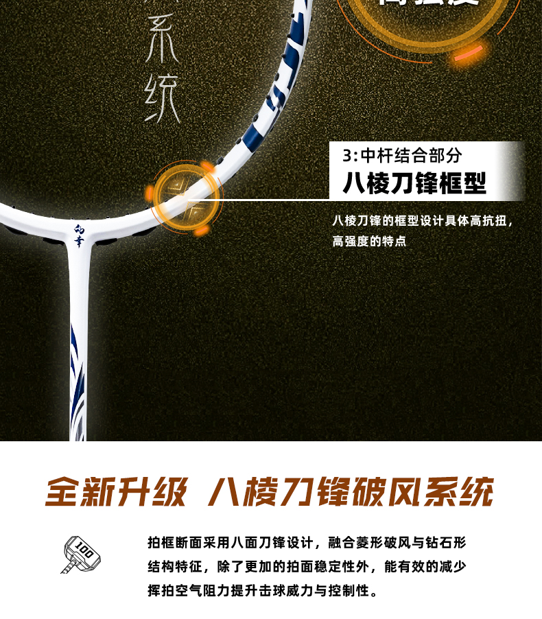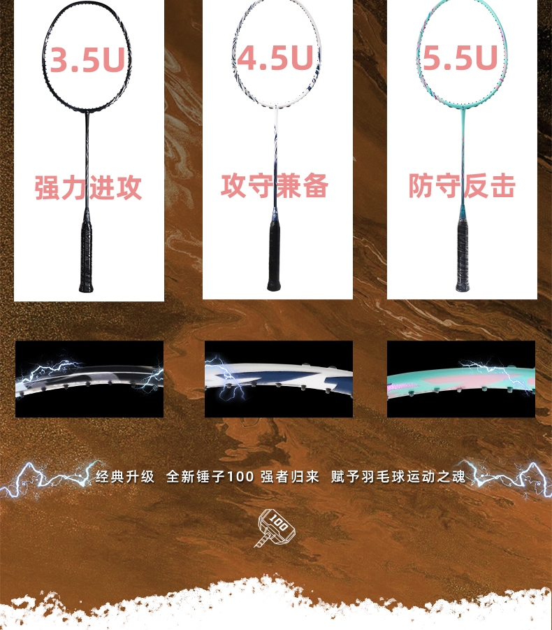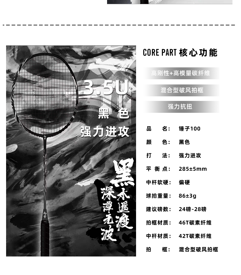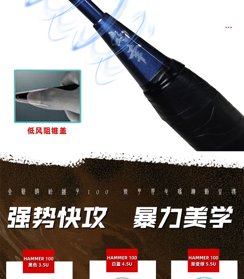 的幸锤子 100 进攻拍 46T 高刚性碳纤 混合破风框攻守兼备单拍