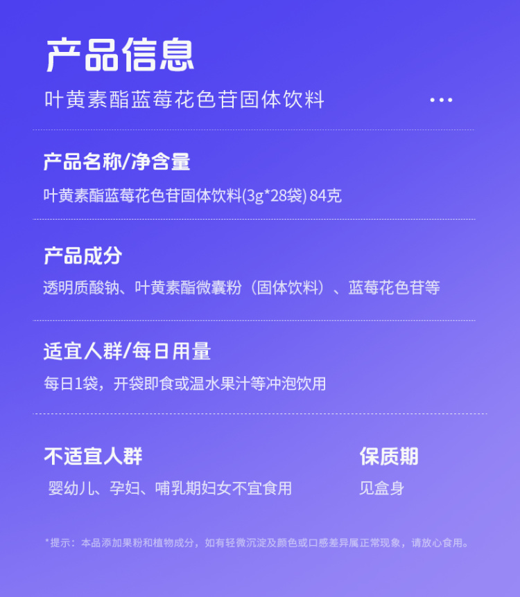 叶黄素酯蓝莓花色苷固体饮料(3g*28条/盒)