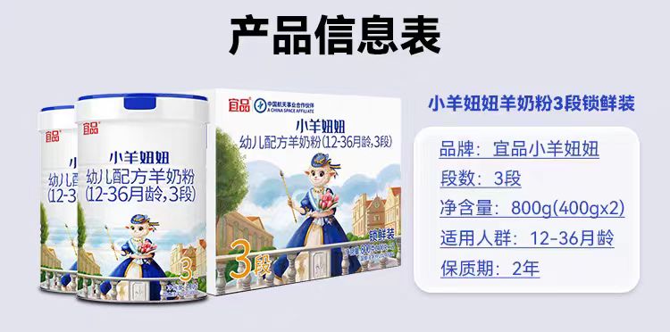 宜品小羊妞妞 A2绵羊奶粉二阶段800克(购满358元参与:1元报名送358元乳铁蛋白)