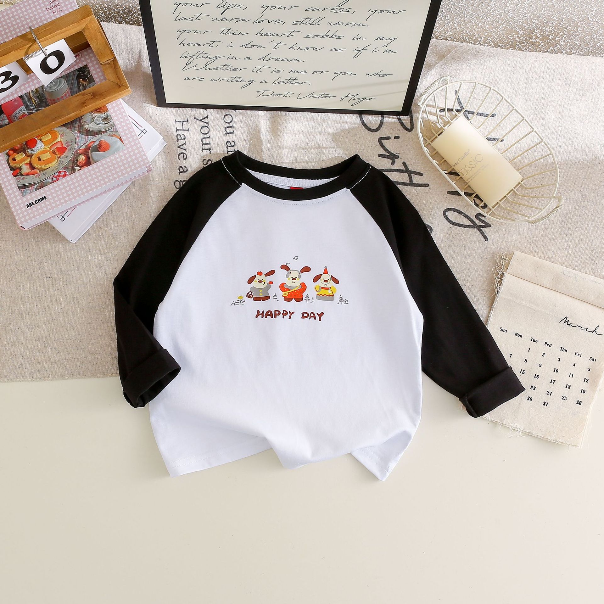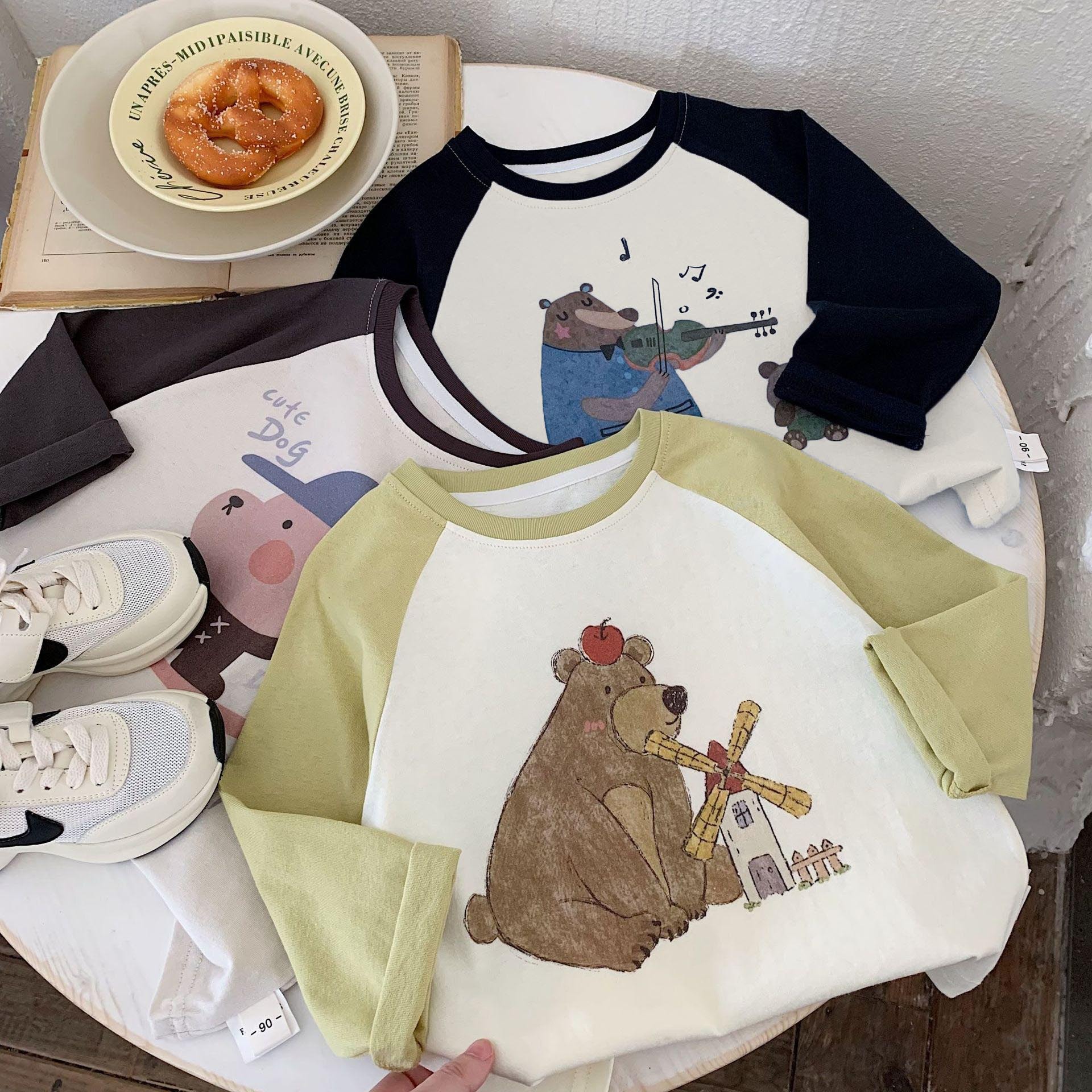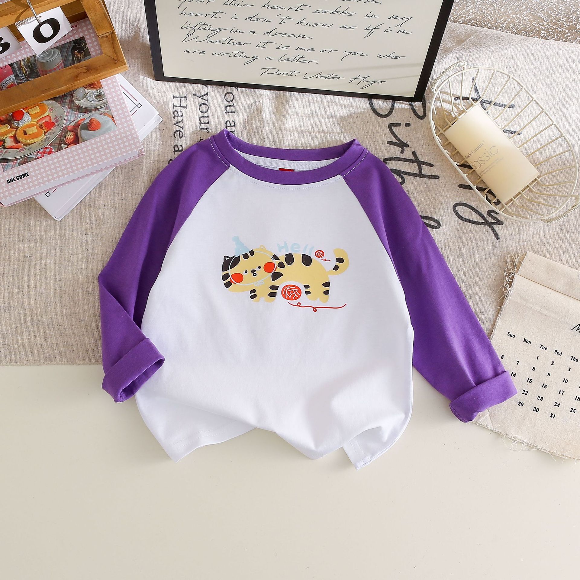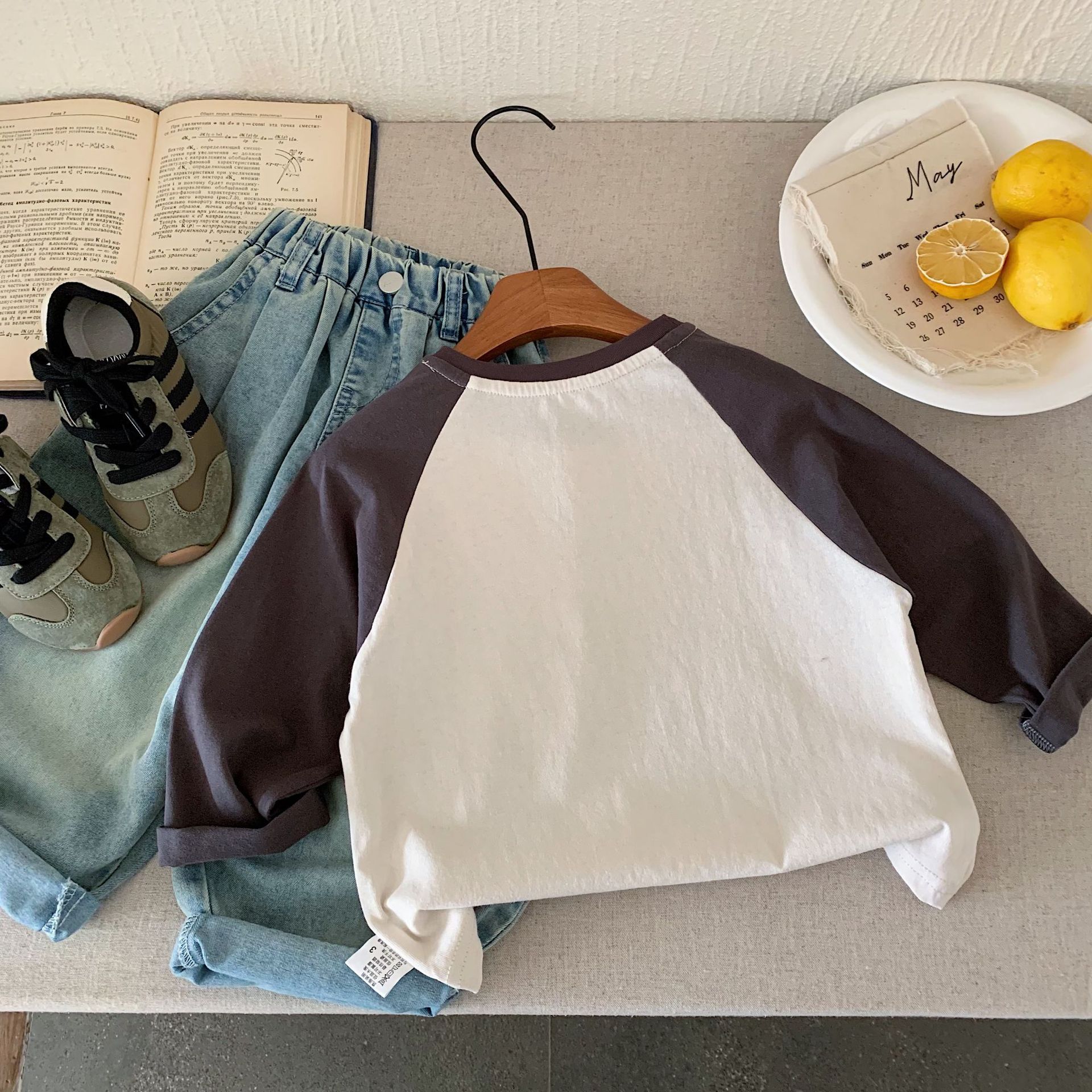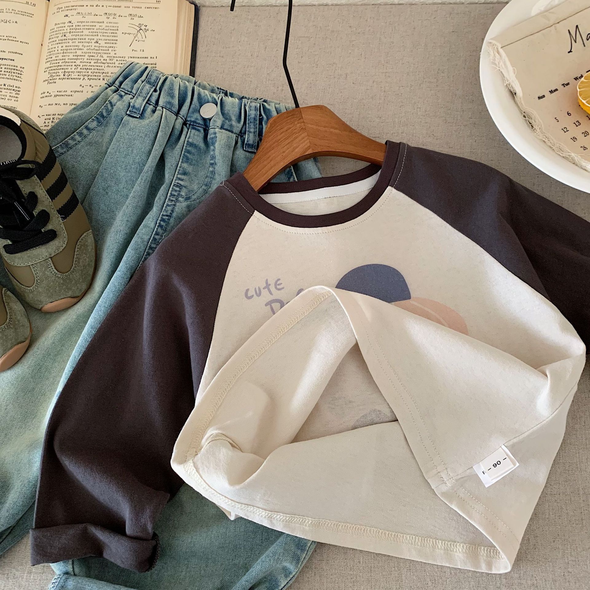 2025秋冬韩版儿童纯棉卡通撞色长袖T恤男女宝宝拼色插肩袖打底衫